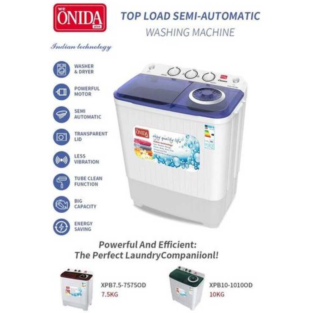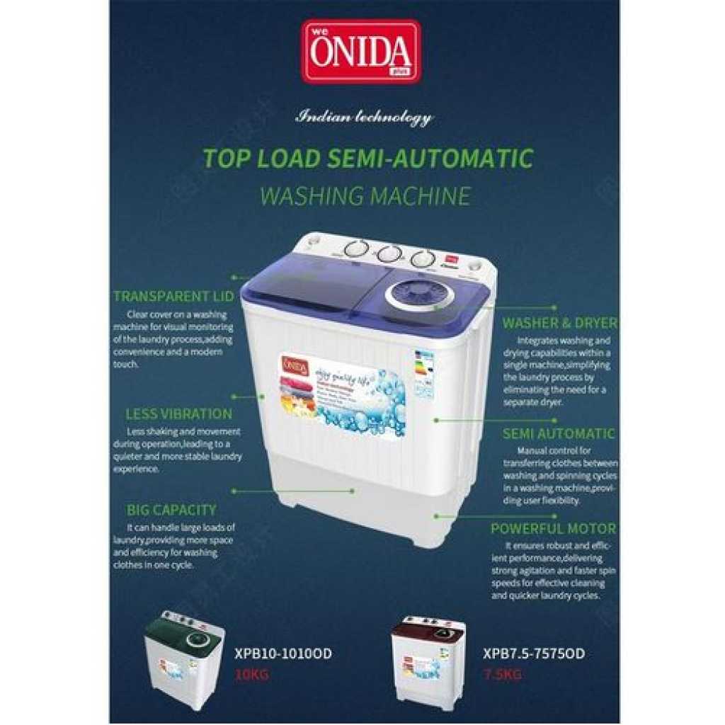 Key Features: 2 Sections: Electric Washer Drum & Electric Drain Drum Timer for washing process Timer for drying proces Brand: Onida Plus Twin Tub 6.5Kg Capacity Semi Automatic Top Load Classic Design Drain Pump