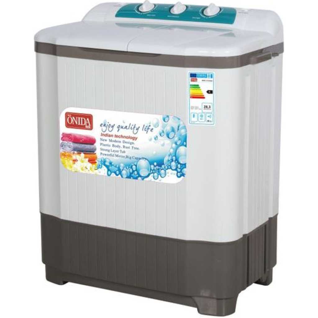 Key Features: 2 sections Electric washer Timer for washing process Timer for drying proces Brand: Onida Twin Tub 7.5Kg Gross Capacity 6KG Net Capacity Washing Capacity 4kg Spin Capacity 3.5kg Semi Automatic Top Load Classic Design Drain Pump