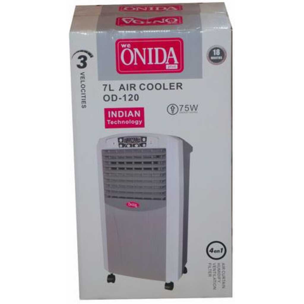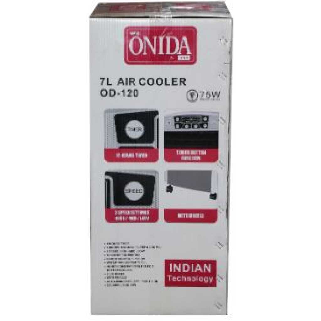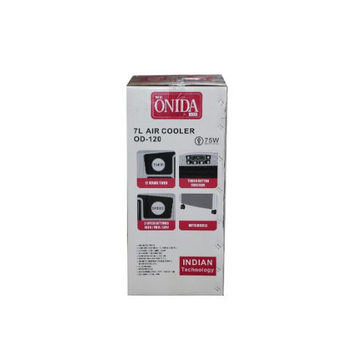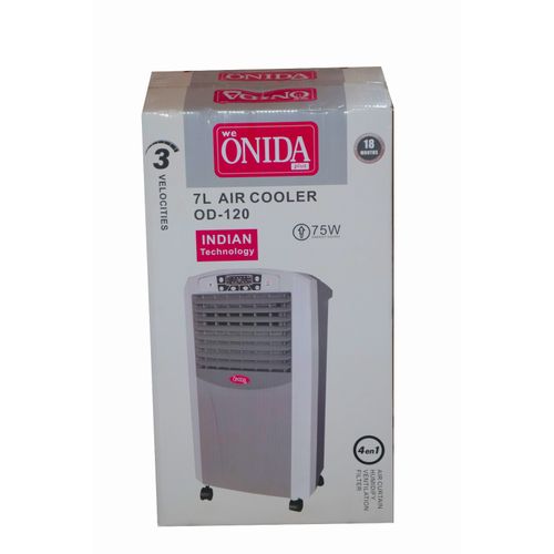 Sleek Design: The Onida plus Air Cooler features a sleek design that can fit into any corner of your house. Its international style delivers quality performance all day long. Heavy-Duty Built: Equipped with motorized louvers and a high-speed motor, this air cooler delivers consistent cooling in all corners with a left-to-right auto-swing function. Made with quality components, it offers lasting durability. Multi-functional: This room cooler features ice chambers that add ice to the water to make the pads cooler, resulting in cool air passing through them. One can easily move it around with its 4 castor wheels. Electronic Display: This air cooler features an electronic display with electronic buttons and functions to allow you to control your air-cooling settings with ease. It is equipped with low, medium & high wind speeds and natural, sleep, and normal modes. Product Specifications:Onida plus 7L Air Cooler comes with a remote for easy use and operates on AC 220-240V of power. Its honeycomb pad absorbs heat from the air causing the water to evaporate, so keep an eye on the water level indicator to keep the water tank full and clean.