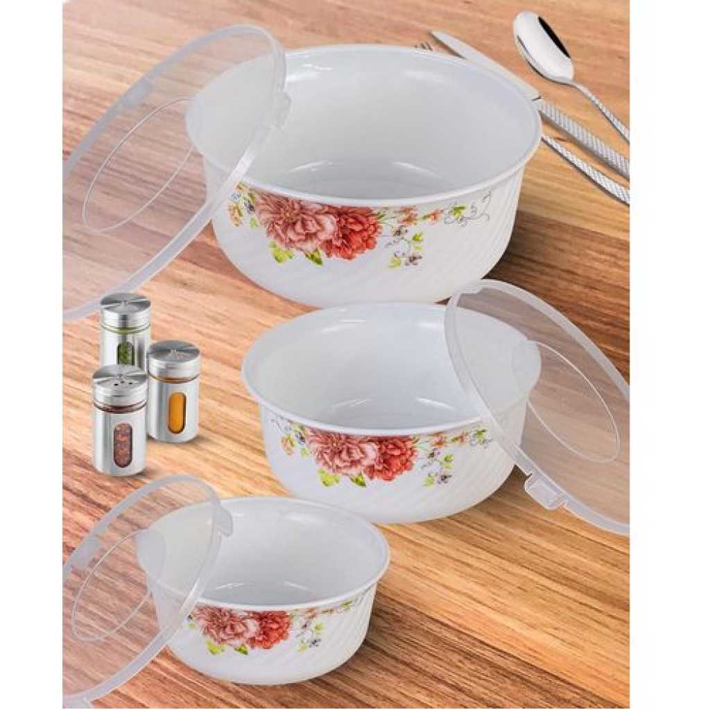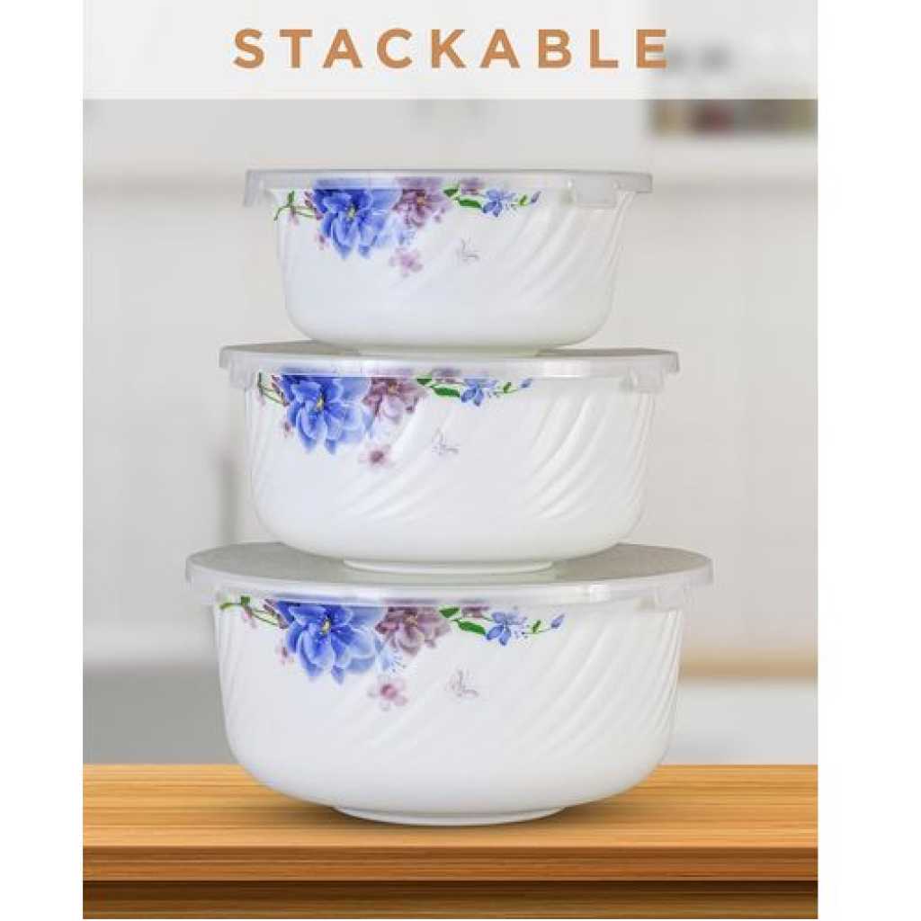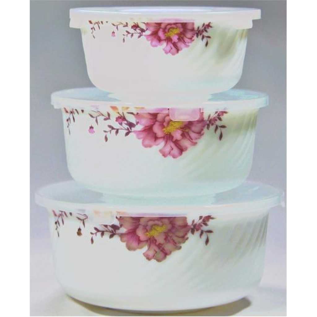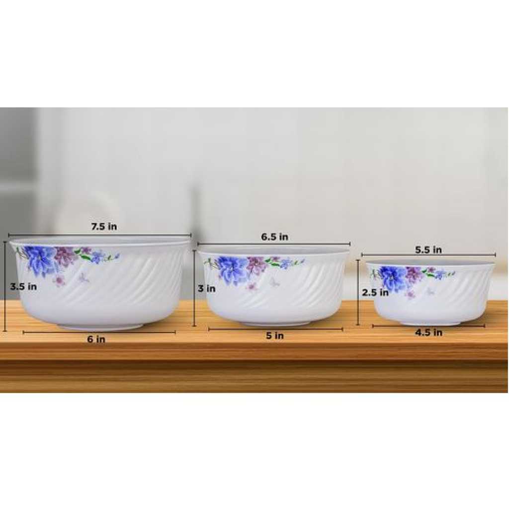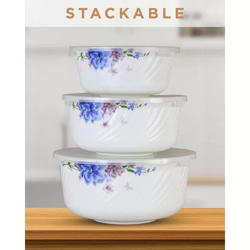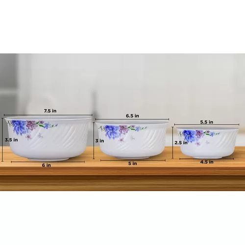 Key Features: Bowl Capacity: Small- 500 ml, Medium- 1000 ml, Large- 1500 ml Non Porous Ceramic material does not absorb stains or odors Can be safely used in fridge, freezer and dishwasher and microwave Bowl Diameters: Small- 5.5 inch Medium- 6.5 inch Large- 7.5 inch