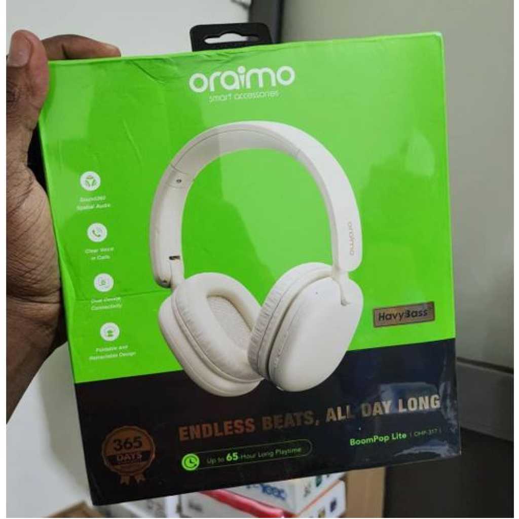Key Features: Powerful Bass Dual-Device Connectivity Game Mode ENC Technology Ani Fast Charging Oraimo BoomPop Lite ENC Over-Ear Wireless Headphones OHP-317 Specifications Battery Life: Up to 65 hours in Bluetooth mode. Quick Charging: Charge for 10 minutes and enjoy up to 600 minutes of playback. Connectivity: Bluetooth 5.3 and a 3.5mm AUX cable. Bluetooth Range: ≥10 meters. Speaker Diameter: 40mm. Charging Port: Type-C USB port. Dual Device Connectivity: Allows pairing with two devices simultaneously, enabling seamless switching between calls and gaming sessions. Low-Latency Game Mode: Enhances gaming experience with instant audio-video synchronization by activating low-latency mode via the M button