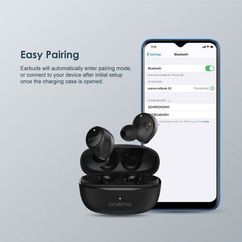 Oraimo Earbuds-2 Super Bass Wireless Stereo Earbuds – Black Product Feature : BT Version: V5.0Range: 10mBattery Capacity: 40mAh(earbud), 400mAh(case)Battery Life: Up to 48 hours standby time / 5 hours playtime / 4 hours talk time / Case provides up to 3 full charges Case Input: Type-C Wire-Free, Hassle-Free No wires, no problem – just industry-leading BT5.0 technology in a minimalist design with smart features. Engineered for Ultimate Comfort Ergonomically designed earbud understands every contour of your ear, and fits in snugly for unmatched comfort and hours of listening pleasure. Intuitive to Your Needs Control your volume, music and calls, access voice assistant with force sensor technology built into both earbuds. Unrivaled Stereo Sound From classical to contemporary, every music genre is enhanced by the bespoke 13mm dynamic drivers of the earbud thanks to its deep bass, natural mids, and clear, detailed treble. Simultaneous, Low Latency Rather than relaying sound from one ear to the other, the newly developed BT chip transmits sound to the left and right ears simultaneously for an exceptional listening experience. Charge As You Go No need to worry about battery life, just place your earbuds in the carry case to charge on the go. 3.5-hour battery life is extended to up to 24.5 hours with the case. Always Connected One-Step Pairing ensures that after the initial setup, the earbuds will automatically connect to your device once removed from the charging case.