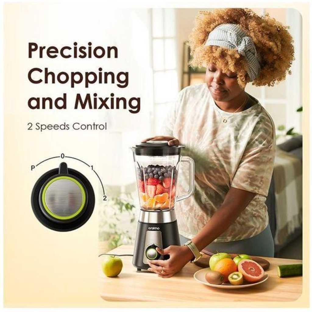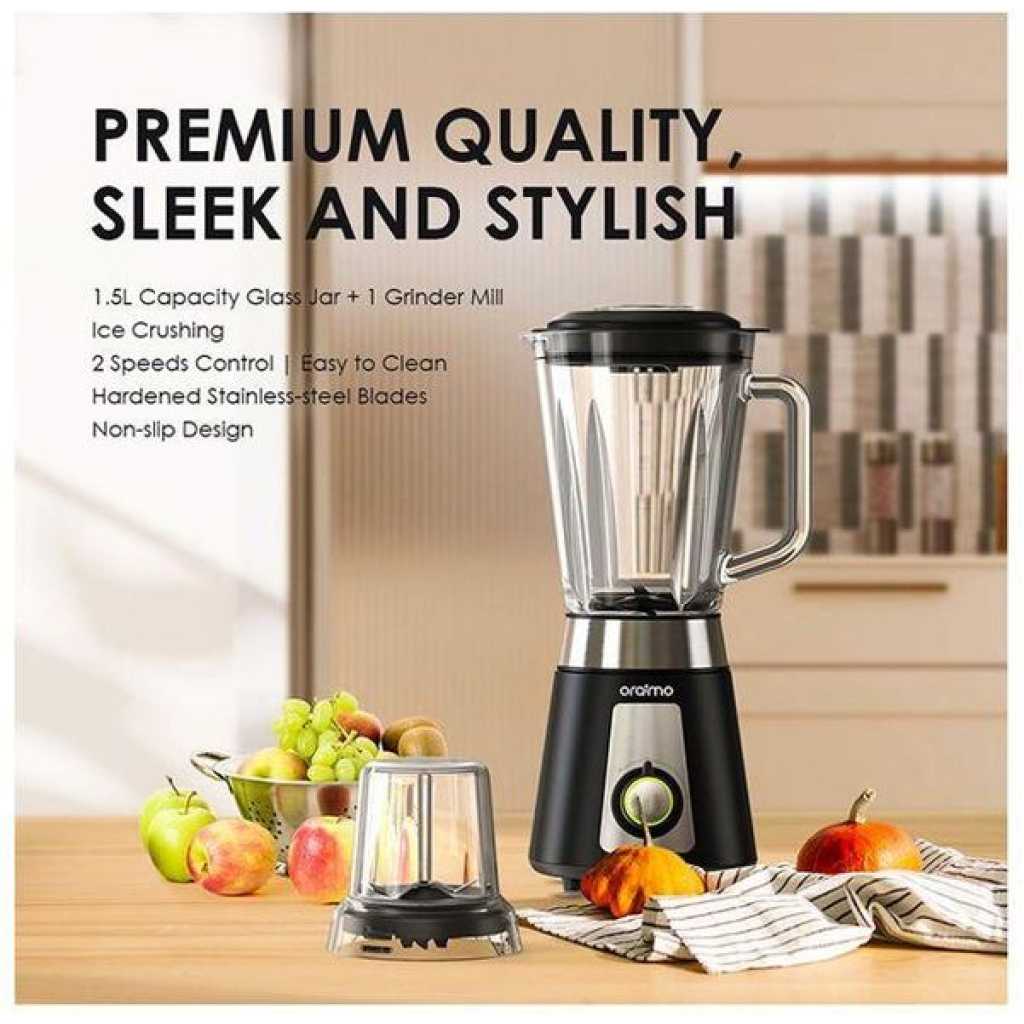 Key Features: 1.5L Glass Jar + Grinder Mill: Large capacity for family servings plus a pulse grinder for coffee, herbs, and spices. Powerful Ice Crushing: 500W motor and hardened stainless-steel blades blend ingredients quickly and smoothly. Durable Blade System: Heavy-duty stainless blades pull ingredients downward for consistent blending. 2-Speed Control: Choose the right speed for chopping, blending, or mixing different foods. Self-Cleaning Function: Blend warm water and soap for a fast 60-second clean. Non-Slip Base: Stable grip reduces vibration and noise during operation.