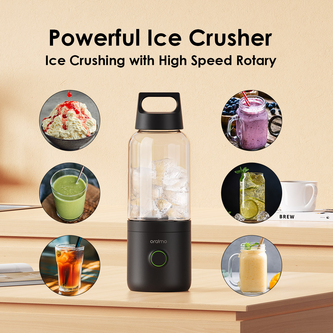 Capacity: 500ML Rated Power: 75W Weight: 536.6g Size: 81*84*253mm Cup Body Material: Tritan Blade Material: 304 stainless steel Waterproof Ring Material: Food-grade silicone Input Voltage/Current: 5V⎓2A Rated Voltage: 7.4V Battery Capacity: 2000mAh*2 *oraimo Lab test results Model: OH-PB1N Product Features: 500ml Large Capacity One Bottle for Your All-Day Vitamins SmartBlender Go’s 500ml Large Capacity keeps you fully fueled and refreshed all day. Eco-friendly Tritan Plastic Made from Tritan, SmartBlender Go is durable, odorless, BPA-free, and perfect for cool hydration on the go! Lightweight and Portable Designed for easy carry and drinking—enjoy fresh juice anytime, anywhere! Sharp Blades, Powerful Motors Experience effortless blending with SmartBlender Go’s sharp blades and powerful motors—perfectly smooth juices in seconds. Effortless Self-Cleaning Enjoy cleaning with SmartBlender Go—just add water, run, and let it self-clean with ease. Powerful Ice Crushing Ice Crushing with High Speed Rotary SmartBlender Go powers through ice with ease, bringing you cool, crushed refreshments in the heat. Dual 2000mAh batteries Dual 2000mAh batteries provide a multitude of juice options on a single charge.