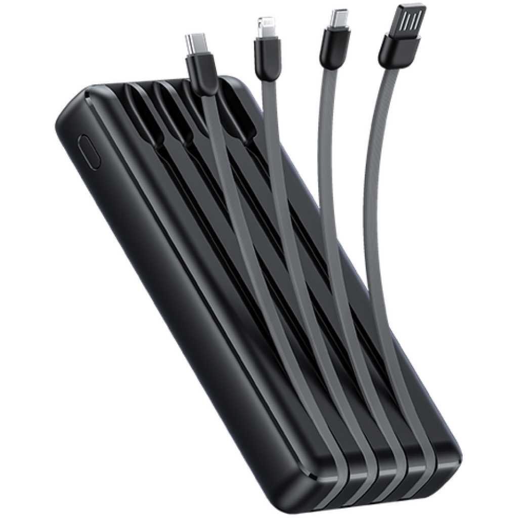 Key Features: Capacity: 20000mAh (74 Wh) Input 1(Micro-USB Port): 5V/2A Input 2(Type-C Port): 5V/2A Input 3(USB-A Cable): 5V/2A Output 1(USB-A Port): 5V/2.4A Output 2(Micro-USB Cable): 5V/2.1A Output 3(Lightning Cable): 5V/2.1A Output 4(Type-C Cable): 5V/2.1A Total Output: 5V/2.4A (Max) Model: OPB-P5201