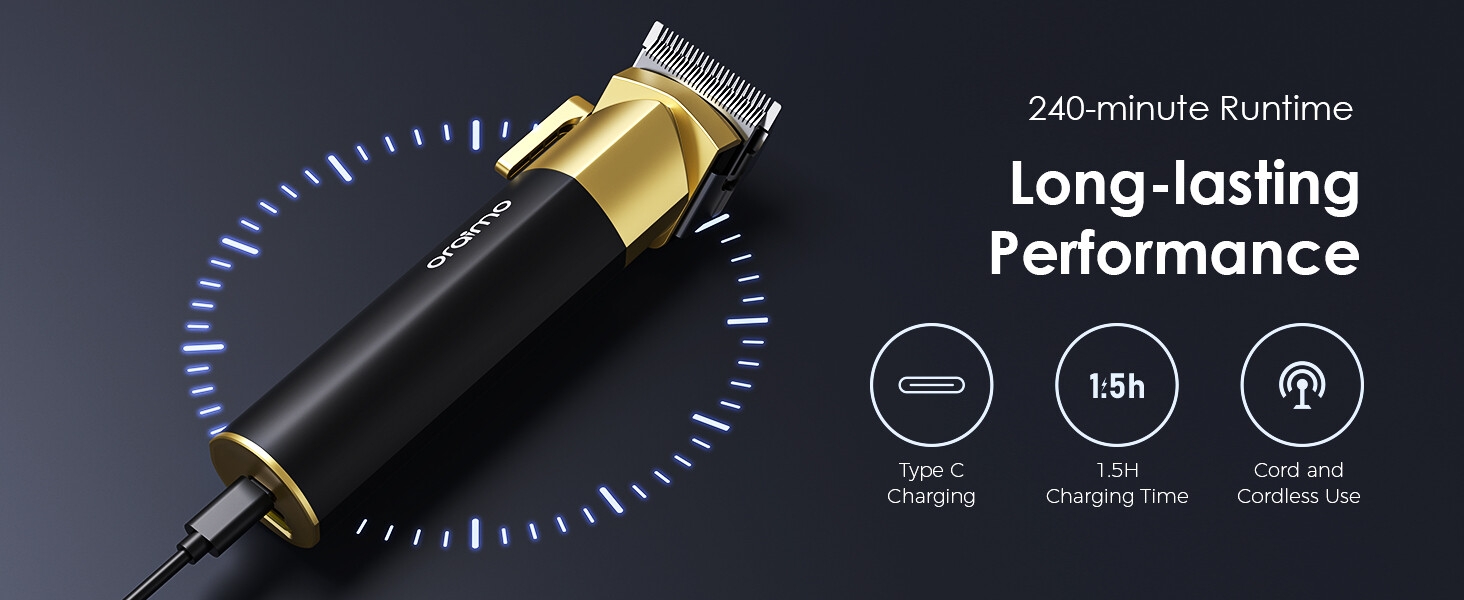 Oriamo OPC-CL33N 2 Prestige Self-Sharpening Smart Hair Clipper For Men Professional Cordless Barber Salon Clipper For Hair Cutting Kit With 8 Guide Combs (1.5Mm To 18Mm),240Mins Run Time,Led Display &