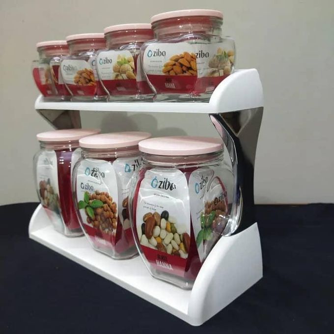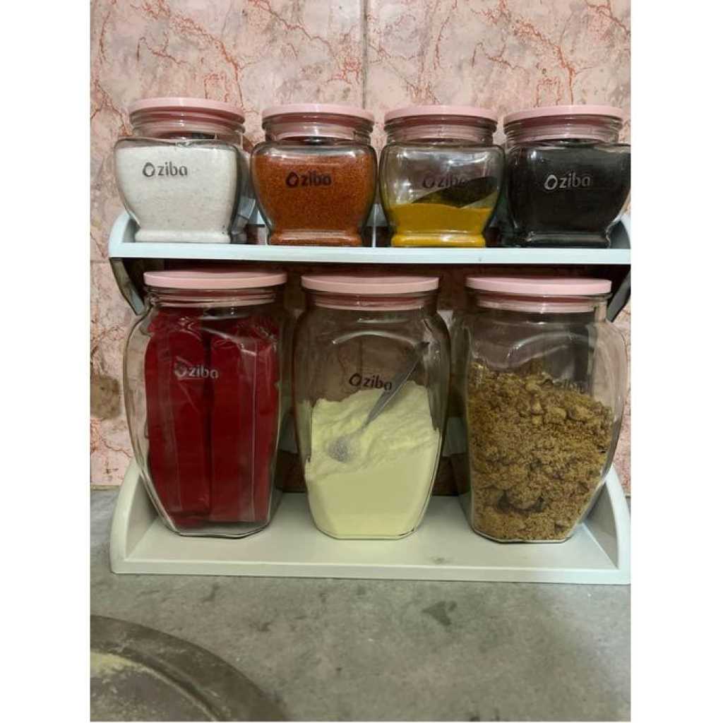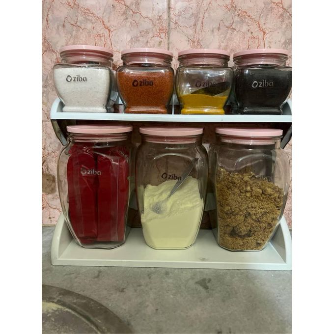 Key Features: Oziba 7 PCS Glass Airtight Spice Jars Set Sugar Tea Coffee Canisters With Wall Attachable Stand- Multicolor Brand: Oziba 7 Pcs Color: Green – White – Pink Origin : Iran Material : Glass and Plastic Dimensions: Length: 25 CM Width: 17.5 CM Height: 24 CM Air Tight Lid. Stand: Yes