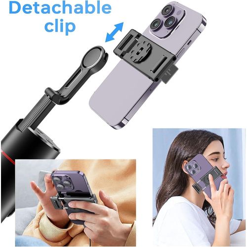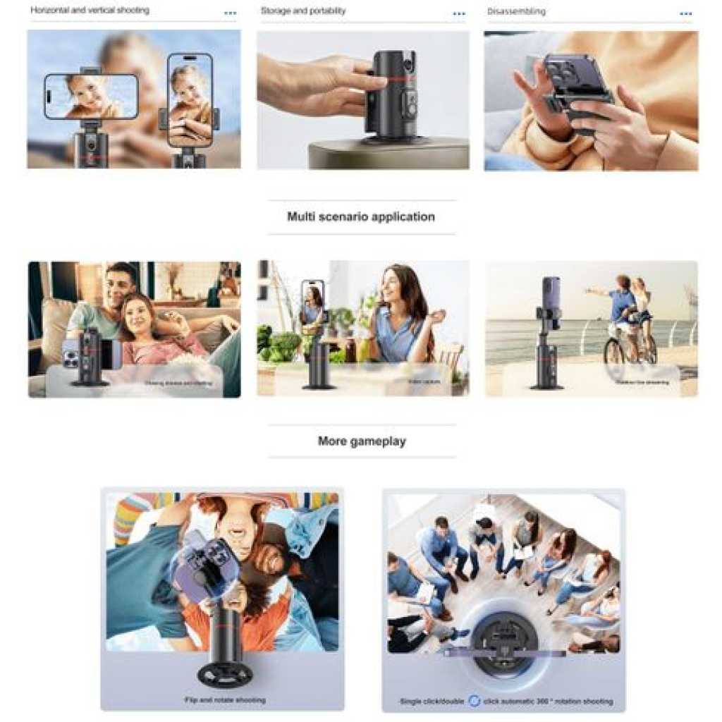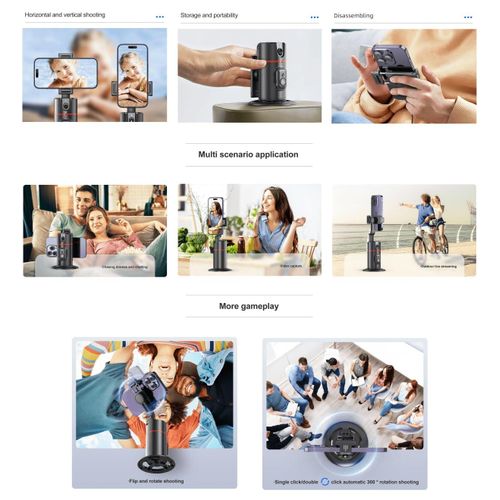 Key Features: Compatible with detachable dual fill lights (lights not included), providing you with additional lighting options for your photography needs. Compatible with a 1/4-inch screw interface tripod (tripod not included), allowing you to attach it to a tripod for added stability and versatility. Enjoy the flexibility of adjusting the lens position of the P02, allowing you to easily achieve the desired framing and composition for your shots. Whether you need to capture a high-angle or low-angle perspective, this feature makes it convenient and effortless. The P02 comes with a built-in wireless remote control, allowing you to control the selfie stick remotely. The phone holder of the P02 allows for 360° horizontal and vertical shooting, as well as 180° front and rear shooting capabilities. Capture your moments from any angle. Powered by the advanced AI chip algorithm from iFlytek, the P02 delivers true intelligent tracking capabilities, ensuring precise and reliable performance. The P02 also offers intelligent gesture recognition, enabling you to control various functions with simple hand gestures. The phone holder of the P02 is detachable, allowing for easy installation and removal of your smartphone. The P02 eliminates the need for additional app installations. Simply connect your smartphone to the selfie stick and start capturing photos and videos right away. The P02 features intelligent 360° facial recognition, ensuring it accurately tracks your face as you move.