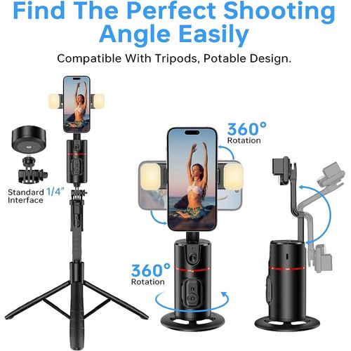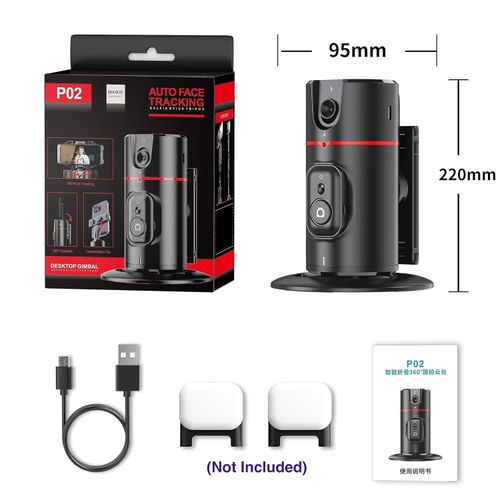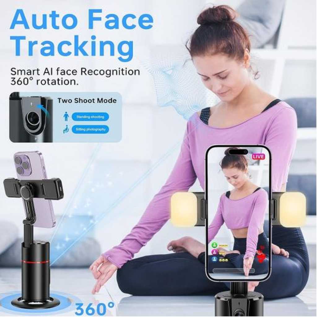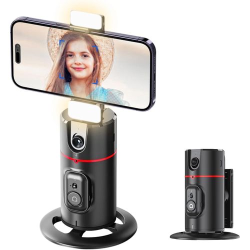 P02 AI Intelligent Tracker 360° Rotating Auto Face Tracking Phone Mount Stand with Fill Light Smart Rotation Desktop Selfie Gimbal Stabilizer for Smartphone Tripod for TikTok Live Streaming & Vlog, Sm