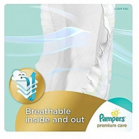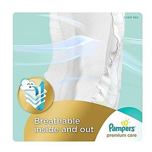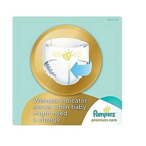Pampers Premium Care Diapers, Size 2 (3-6kg), Jumbo Pack (Count 74) Give your baby our best care for skin, Pampers Premium Care. Pampers Premium Care diapers are gentle and hypoallergenic to help maintain baby’s healthy skin. They have Extra Absorb Channels™ to distribute wetness evenly for up to 12 hours and an Absorb Away Liner ™ to pull away wetness and mess. They’re also breathable inside and out and have a wetness indicator that lets you know when your baby might need a diaper change. This way your baby can enjoy comfortable dryness even after little accidents, for up to 12 hours. No nappy absorbs liquid stool as well as pampers Premium Care. Breathable Back Sheet keeping babies aerated always.