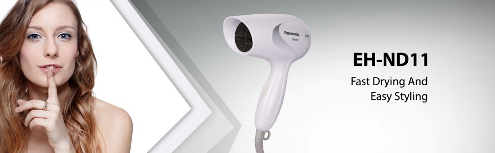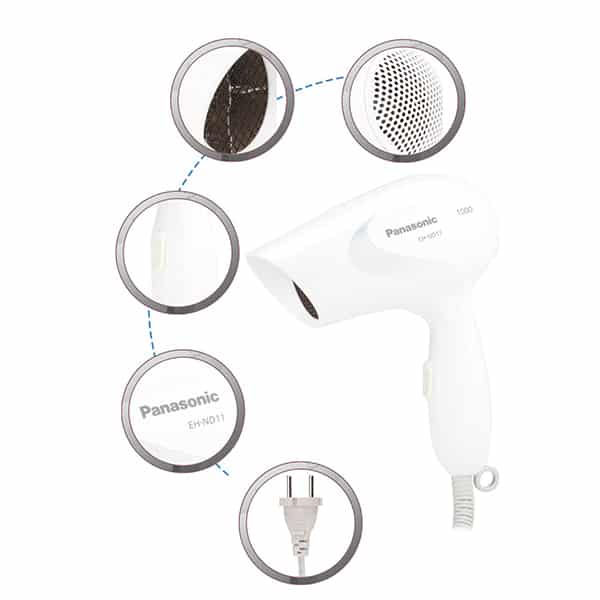 Key Features: Panasonic Hair Dryer EH-ND11 1000W 220V – White. Brand: Panasonic Model Number: EH-ND11-W62B Color: White Model Name: EH-ND11-W62B Number of Speed Settings: 2 Number of Heat Settings: 2 Attachment Types: Concentrator Cold Air Feature: No Technology Used: Uniform Blow Technology