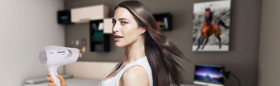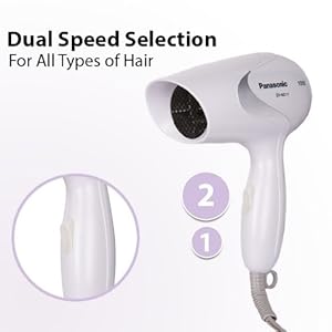 Panasonic Hair Dryer EH-ND11 1000W 220V – White. Compact design, portable size: With its compact, convenient, portable size this hair dryer fits anywhere. It is portable enough to be carried easily in your travelling bags and backpacks so that you can keep your personal stylist close to you always. ➦ Dual Speed and Heat ➦ Long Non-Tangled Cord ➦ Compact and Portable Dual speed selection: This hair dryer offers two speed settings to select the amount of speed required for different hairstyles. The speed of the air can be easily varied with just the simple push on the handle. 1000 W turbo dry: The dryer consumes 1000-Watt power which provides powerful yet gentle air to dry the hair effectively within minutes. Turbo mode produces high speed uniform airflow that can set tresses and dry locks efficiently. 1.8 m. long tangle-free cord: It is equipped with a 1.8 m long tangle free cord. The cord enables easy utilization without pulling it out of the power socket when you yank it. It increases the range of the device so that you can use the dryer comfortably. Light in weight, ergonomic design: This hair dryer is light in weight and has an ergonomic design that is very easy to hold and operate. It has a hanging notch at the base so that it can be hung by a hook near the closet or wardrobe. Warranty Information: 2 Year Standard Manufacturer Warranty by Panasonic from the Date of Purchase
