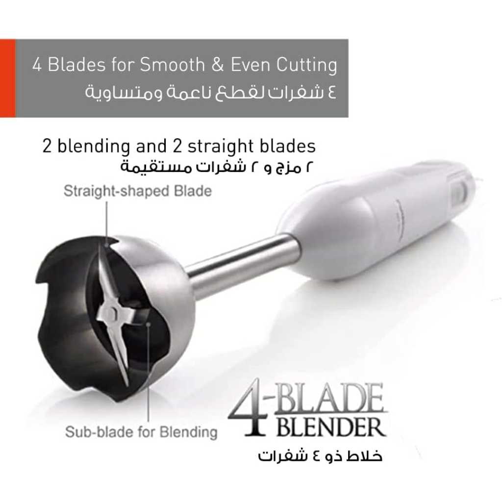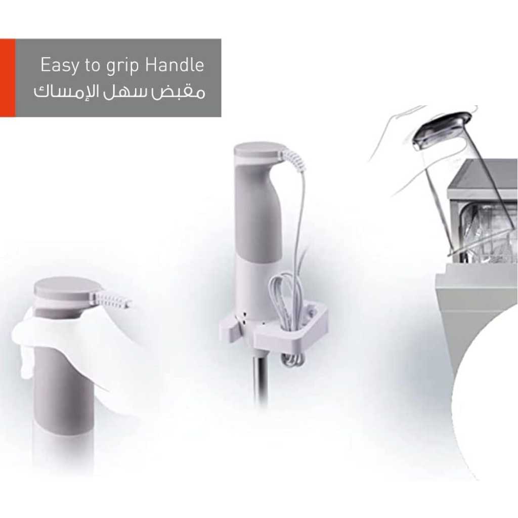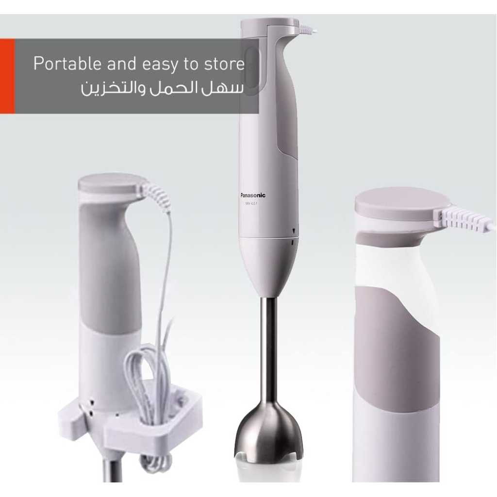 Key Features: Panasonic Hand Blender MX-GS1WTZ 600W With 1.7L Bowl. Easy-to-Grip Handle. 2 Straight & 2 Blending Blade. Stainless Steel Shaft. Powerful motor 600 W max. One speed. Easy to use & time saving. Blending bowl .7 L . Cord length 1.3 M. Wall bracket.
