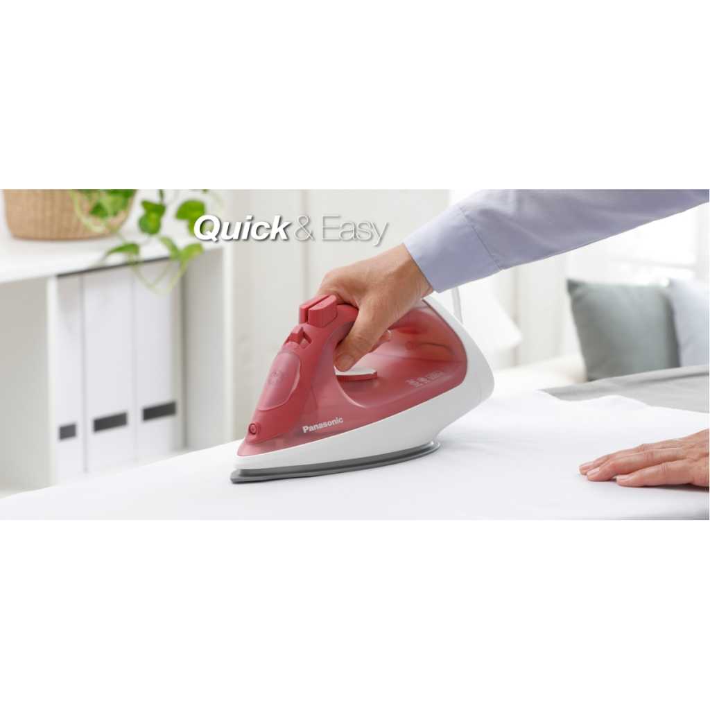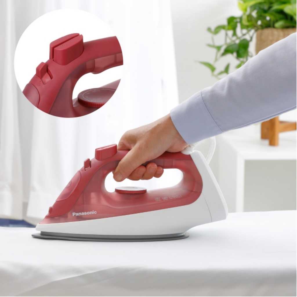 Key Features: Panasonic Steam Iron 2300W, Anti Calc Titanium Coating Spray + Vertical 100g Power Shot Steam NI-S430 – Green Powerful steam from the entire soleplate with U-shape groove ◼ 2300 W high power input ◼ Quick wrinkle removal with Power and Vertical Shot ◼ Smooth, stable glide with ergonomic grip and low-height design ◼ Large capacity 300 mL water tank for bulk-ironing ◼ Durable, smooth sliding silver titanium soleplate