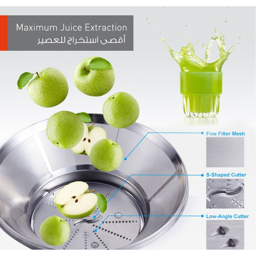 Key Features: Panasonic Wide Tube 800W Juicer, 1.5L Juice Cup 2.0L Large Capacity Pulp Container, MJSJ01 – White The stainless steel spinner’s S-Shaped cutter firmly holds fruits in place for optimum juice extraction. The fine filter mesh separates the juice from the pulp so you always get a refreshing drink. 800W Max.Locked Wattage for powerful juicing The feeder tube has a 75mm diameter, large enough to fit whole fruits & vegetables. 120 Degree Rotatable Anti-Drip Spout allows for easy pouring in different directions. Single Speed Juicing 1.5L Juice Cup 2.0L Large Capacity Pulp Container