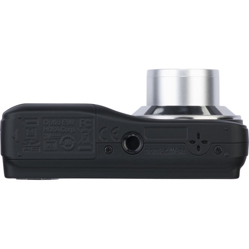 Pentax Optio E90 Digital Camera (Black). Simple and compact, the Pentax Optio E90 Digital Camera boasts amazing ease of use in an ergonomic design that fits perfectly into your pocket. Featuring a textured rubberized surface, large control buttons, and a highly intuitive menu system, the E90 makes taking great pictures as simple as point and shoot. The camera records still images at a resolution of up to 10.1 megapixels with superb color saturation and life-like detail. Auto Picture Mode, Face Recognition Autofocus, and the revolutionary High Sensitivity Digital SR Mode (with ISO up to 1600) ensure perfect photos under even the most challenging lighting conditions. A highly flexible 3x optical zoom lens provides coverage for everything from scenic landscapes to portraits of family and friends. Easy to carry and even easier to use, the Pentax Optio E90 is an excellent choice for capturing personal photos and video.