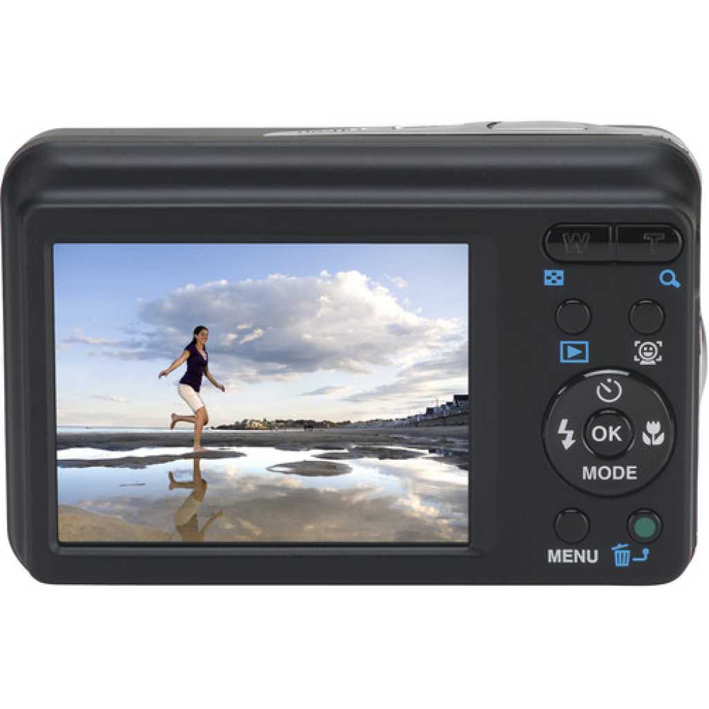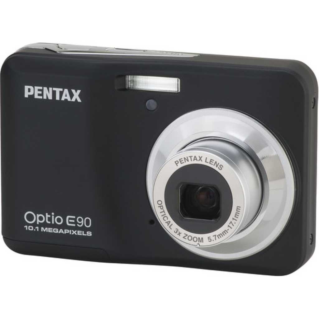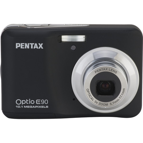 Key Features: Pentax Optio E90 Digital Camera (Black). 10.1 Megapixels 2.7″ LCD Simple Operation Uses AA Batteries 3x Optical Zoom Lens Sure Grip Construction High Sensitivity (ISO 1600)
