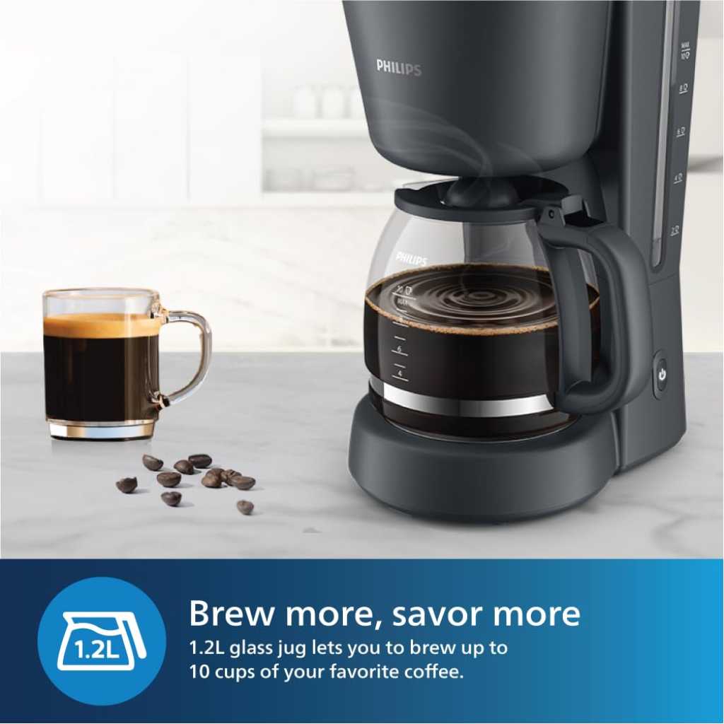 Philips 1000 Series Drip Coffee Maker With Up To 10 Cups Of Coffee,Keep Warm Mode For Long-Lasting Hot Coffee,Auto Shut-Off For Safety,Drip Stop To Pour 1.2 L 1000 W HD7430/90 Black