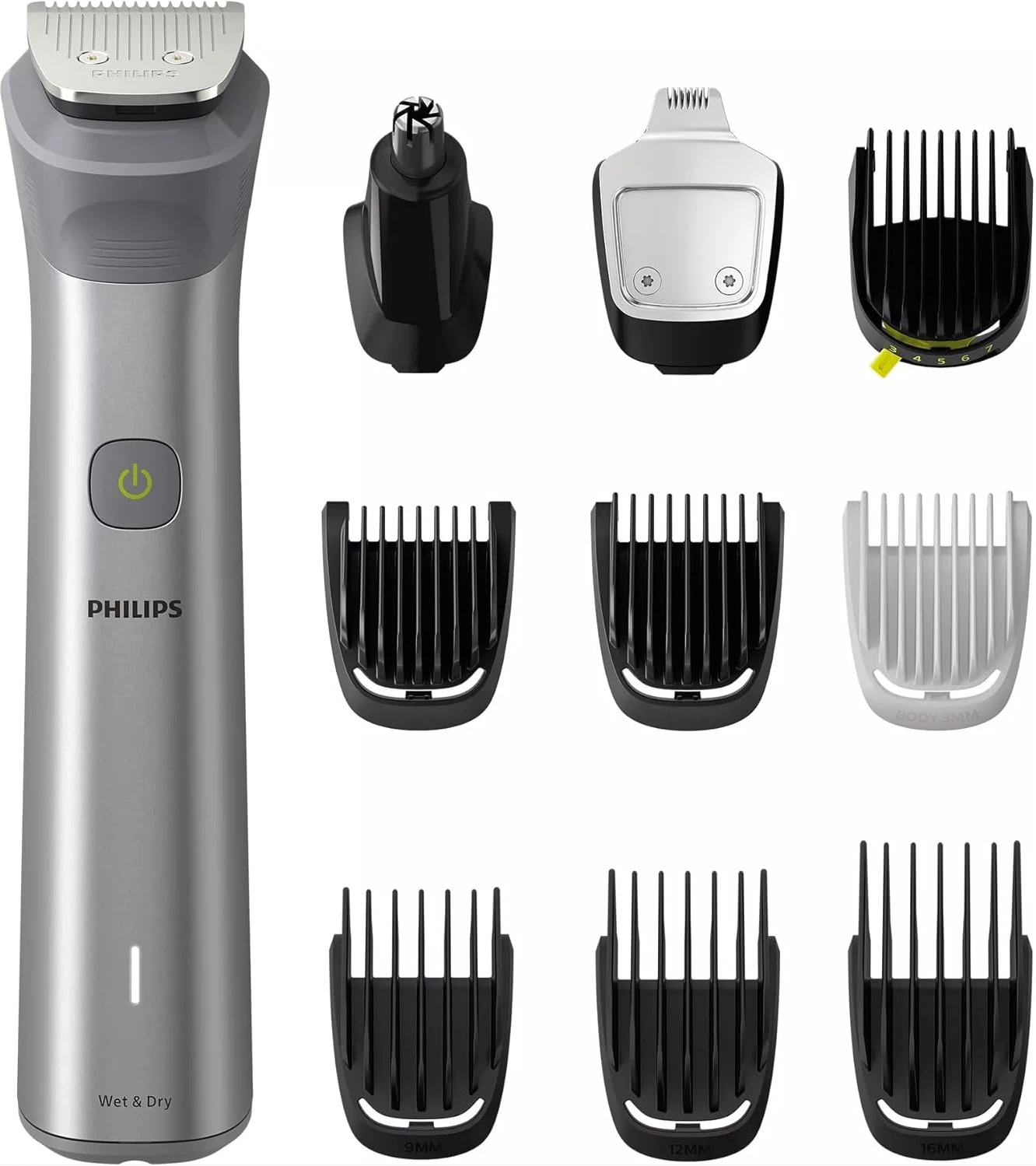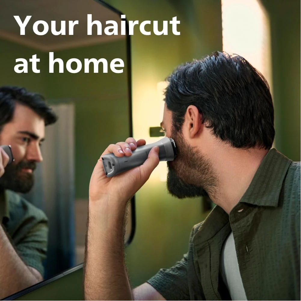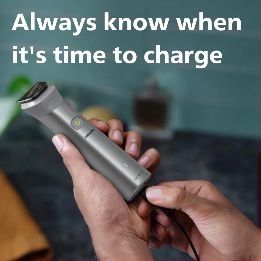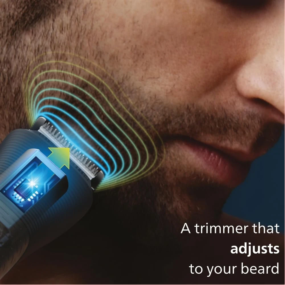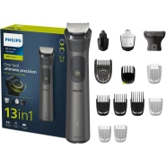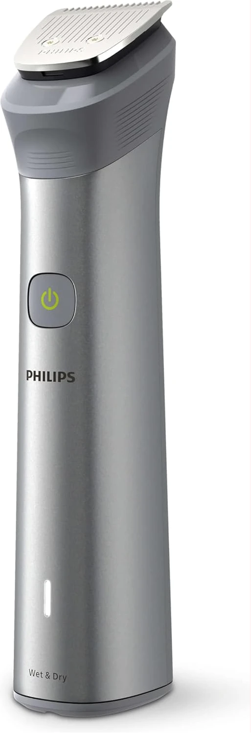 Philips All-in-One Series 5000, 10-in-1 Face, Hair and Body Trimmer, MG5920/15. The Philips OneBlade 5000 Series offers effortless trimming, shaving, and edging for both your face and body. Includes 12 tools for all your trimming needs Utilises BeardSense Technology scans beard density 125x per second and can increase cutting power for more bushy or longer beards. Choose from 11 lock-in length settings, ranging from 0.4mm to 5.0mm, to achieve the desired trimming and grooming style. Runs up to 4 weeks on a single charge, 120min runtime and comes with indicators to let you know exactly when’s time to charge. Its waterproof design allows for easy cleaning and can be used in both wet and dry conditions. Important information Safety Information Ensure the device is properly turned off and unplugged before cleaning or maintenance to reduce risk of electric shock. Avoid fully submerging the device in water, even though it is waterproof, to prevent damage.