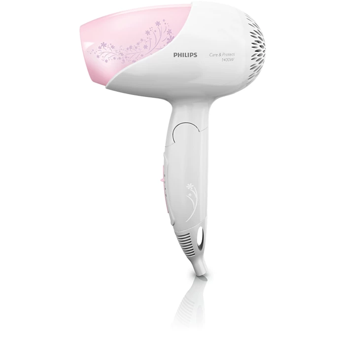 Key Features: Philips Hair Dryer HP-8117, 1400W Foldable Quick & Gentle Drying, ThermoProtect Temperature Setting, Three Flexible Settings For More Control, Compact Design With Integrated Nozzle For Efficient Drying, Foldable Handle For Easy Handling Foldable handle for easy portability Compact design for easy handling Three flexible settings for more control Integrated nozzle for more efficient drying Cool air setting for gentle drying Thermo Protect temperature setting