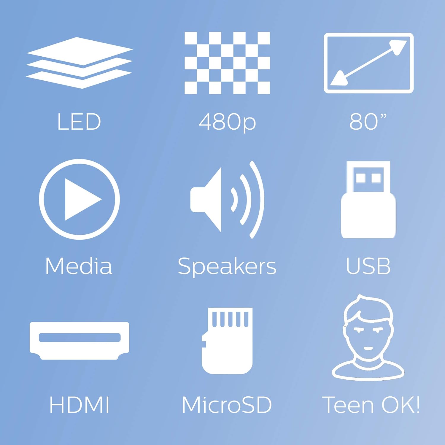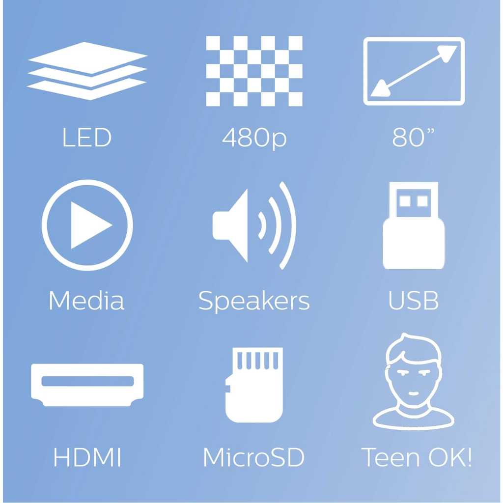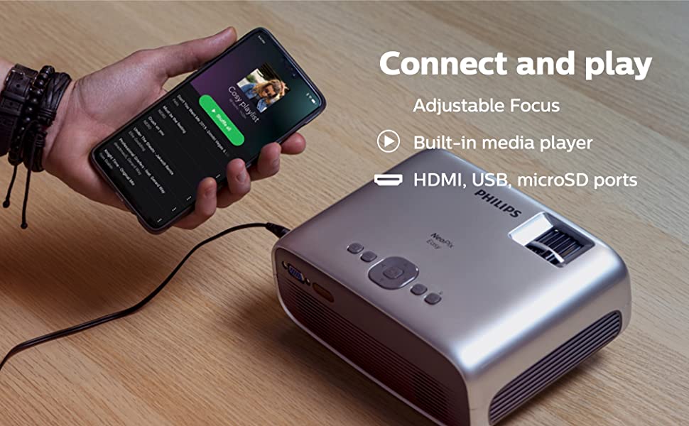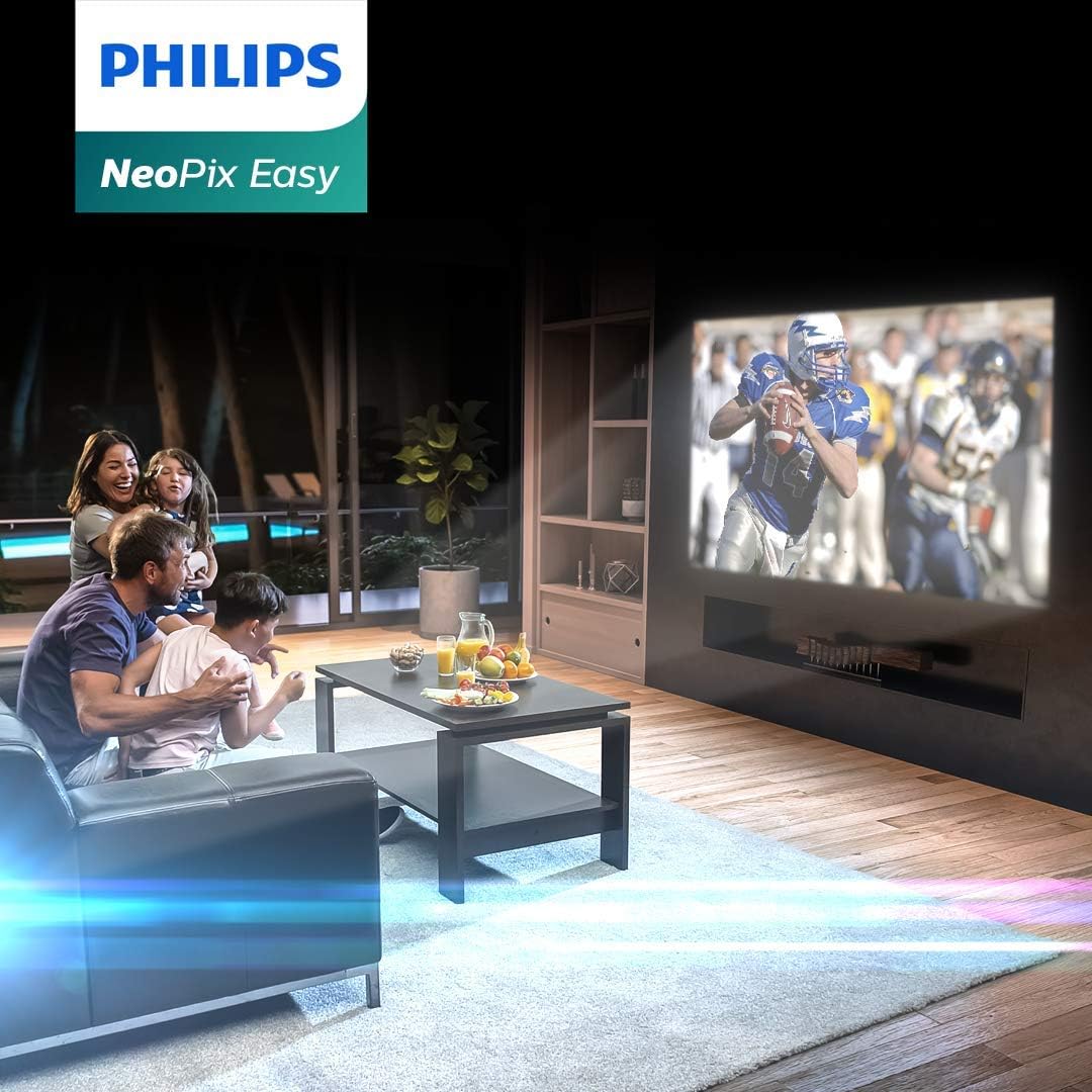 Key Features: Projector ideal for home or for professional use the philips neopix easy projector is perfect both for professional use and for enjoying unlimited contents at home Thanks to its small size but impressive image quality you’ll think you’re watching the content in a conventional cinema you will be able to project images and videos up to 80 “less than 2 meters from the wall so that distance and space will never be a problem anymore High quality and fidelity stereo sound system the neopix easy has 2 built-in stereo speakers of 2w each for crystal clear clarity sound Without the need for an additional sound system the built-in stereo speakers produce surround and deep sound ideal for watching movies at home making presentations or listening to music Smart projector and total connectivity access unlimited content by connecting any game console or smart TV decoder such as fire stick or apple tv connect any multimedia device such as tuners pc mac game consoles and streaming devices such as fire stick or apple tv with usb (1) hdmi (1) vga (1) microsd (1) output Audio (3 5mm) AV input (3 5mm) and DC input Technology and official quality philips designs and technology 100% manufactured by philips which gives you security when buying a projector that other brands cannot led light source brightness of up to 2600 led lumens and a 20 year lifespan form one of the mini projectors with the best value for money on the market obtain a projection image size of up to 80 “(200cm) and a 16 9 aspect ratio and 1 4 1 range (3000 1 contrast ratio) count