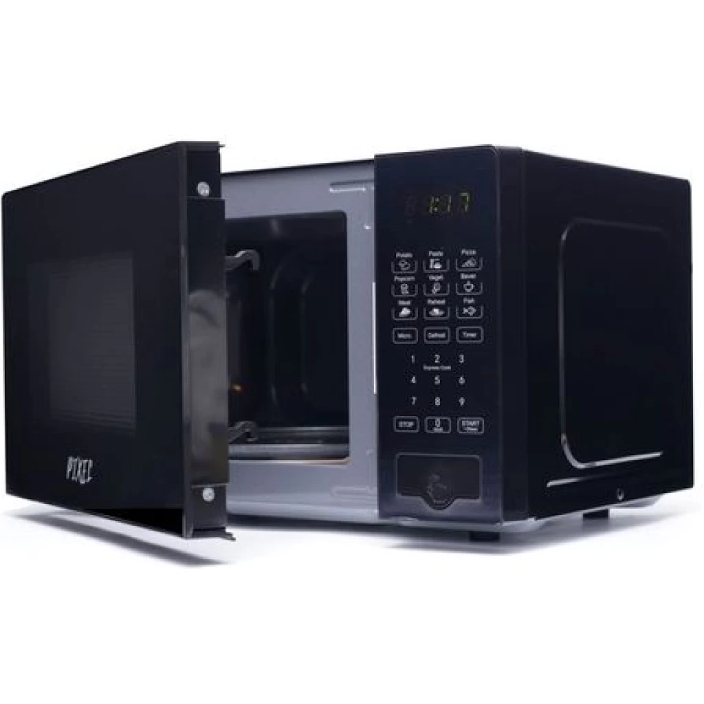 PIXEL 20 Litres Silver Mirror Microwave 700W GOLDEN PROPORTION TRANSFER HEAT Cook your food without reducing its natural nutrients, preserve important vitamins & minerals while keeping your food tender & juicy. DURABLE DOOR DESIGN Improved & long-lasting door durability thanks to the superior materials used to manufacture our product. 360° ROTATING HEATING PLATE Heat your meals evenly with the 360° plate rotation. DEFROST FUNCTION Defrost deep frozen food easily.Power: 700W Preset Menus: 6 PRESET COOKING MENUS Auto Defrost Function: YES Control Type: DIGITAL Features:Model: PXS342Colour: SilverSize: 20L Product/Packaging Information Product Weight: 12.5 kg Product Dimensions:259mm(L) x 328mm(W) x 440mm(H) Shipping Dimensions:291mm(L) x 380mm(W) x 488mm(H) Stylish and elegant design makes the this Microwave Oven a lifestyle item suitable for any kitchen. It features with mechanical operation.
