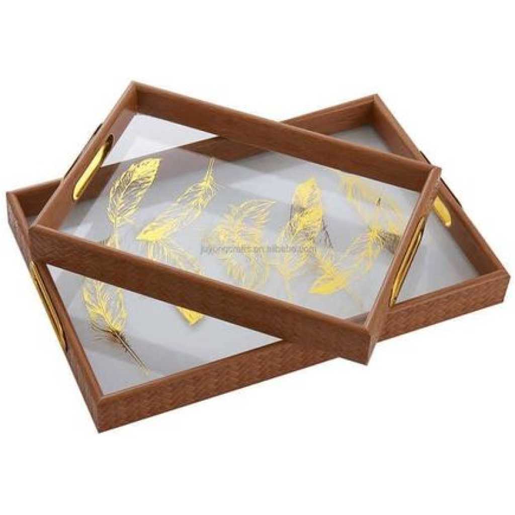 Plastic Glass Cup Holder Tray Tea CakebServing Tray Set (2 Pieces) –Decoration Trays With Handle And Non-Slip Surface - Storage Tray For Food Plates Drinking For Hotel Beauty Salon And Home