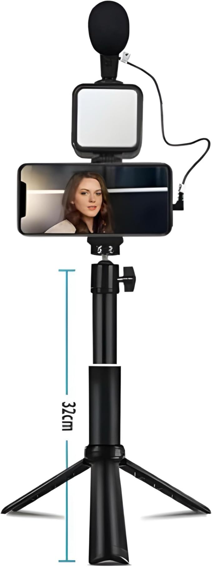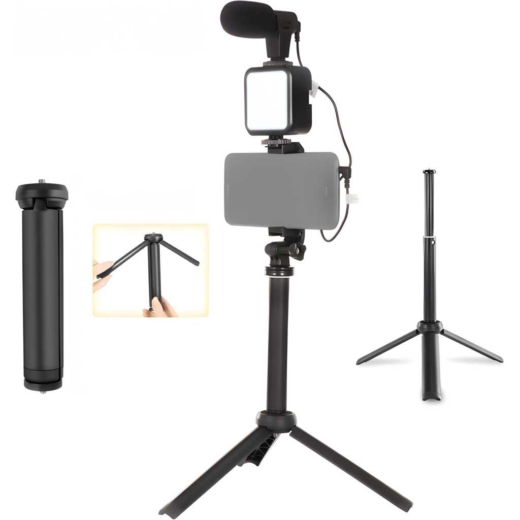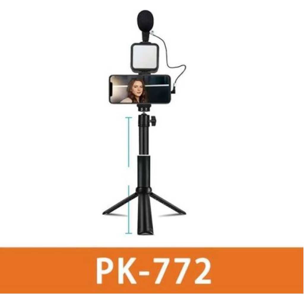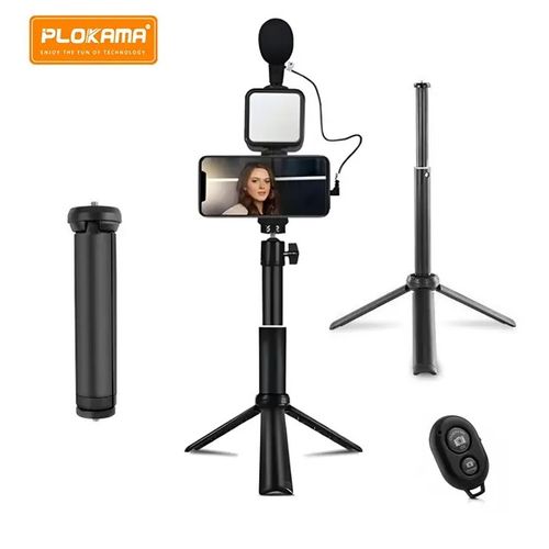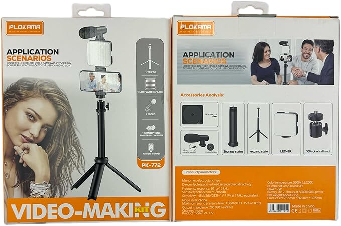 The Pulokama PK-772 is a lightweight and portable video making tripod, weighing only 1.3 pounds. It features a sturdy ABS material construction and a ball head tripod head type, with a leg diameter of 22 millimeters. The tripod has dimensions of 29.590 centimeters in height and 10 inches in depth. It is suitable for taking videos and photos, and is compatible with various smartphone models. The tripod is powered by 7W with a voltage of 3V and requires 2 AA batteries. It has a color temperature range of 5400K-5800K. The special feature of this tripod is its lightweight and portable design, making it an ideal choice for on-the-go videographers and photographers.