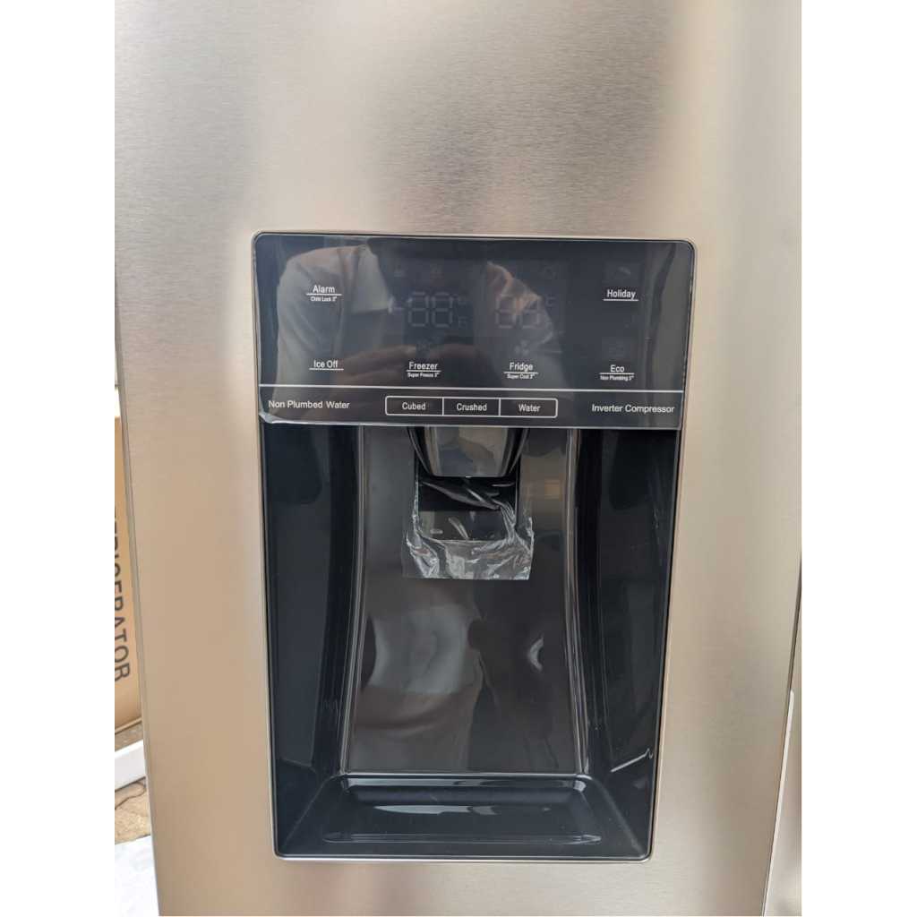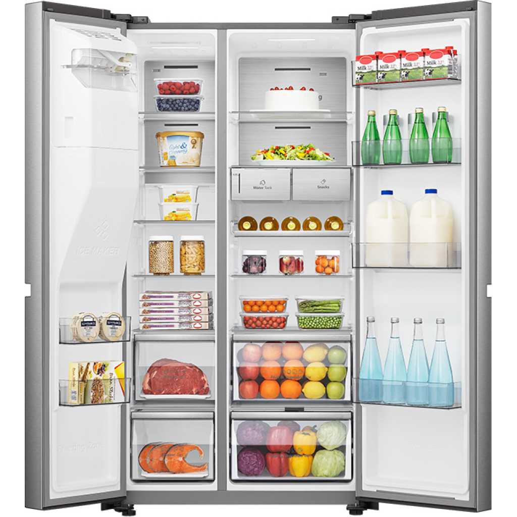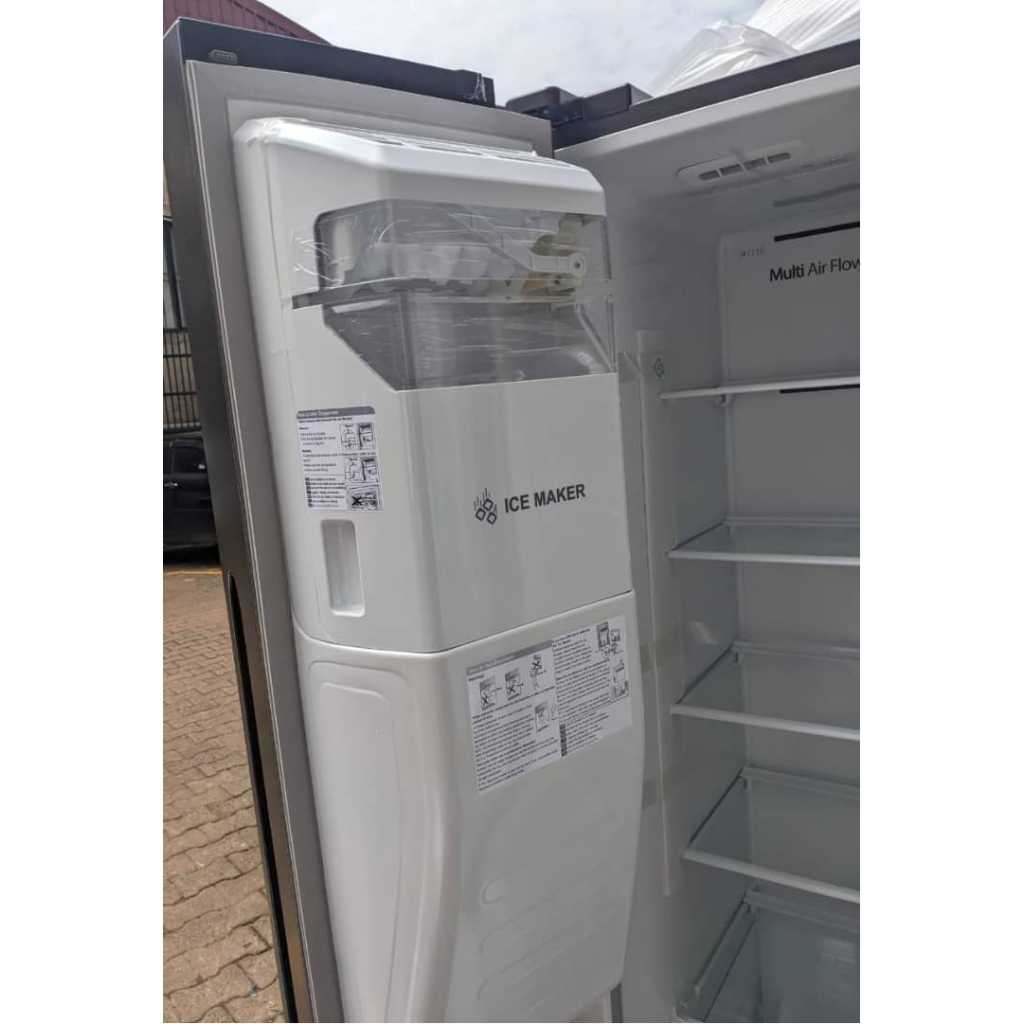 Popular 670L Side By Side Refrigerator PO-670, Total No Frost, Water Dispenser, Ice Maker, Ice Cube Dispenser – Silver. Total No Frost Multi Airflow Touch Electronic Control Ice And Water Dispenser Non-Plumbing Water Tank LED Lighting Super Freeze