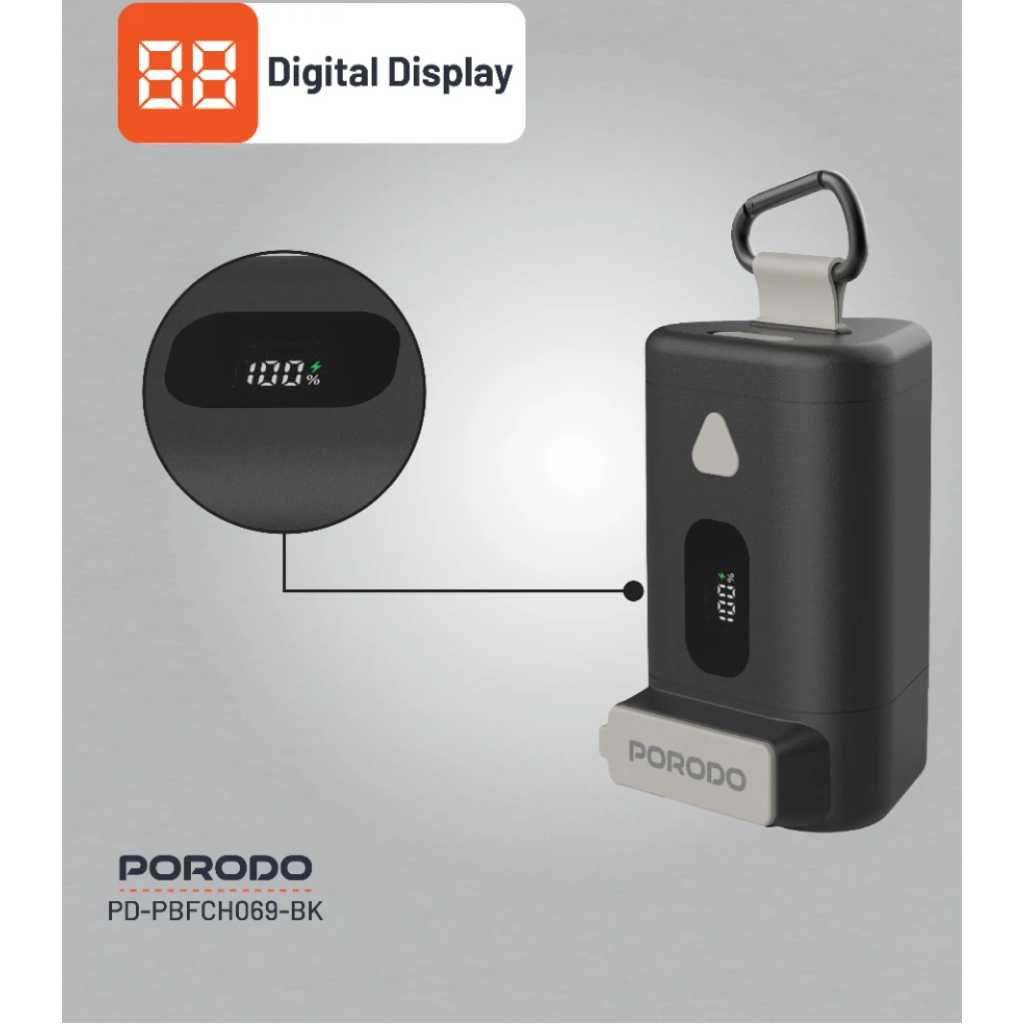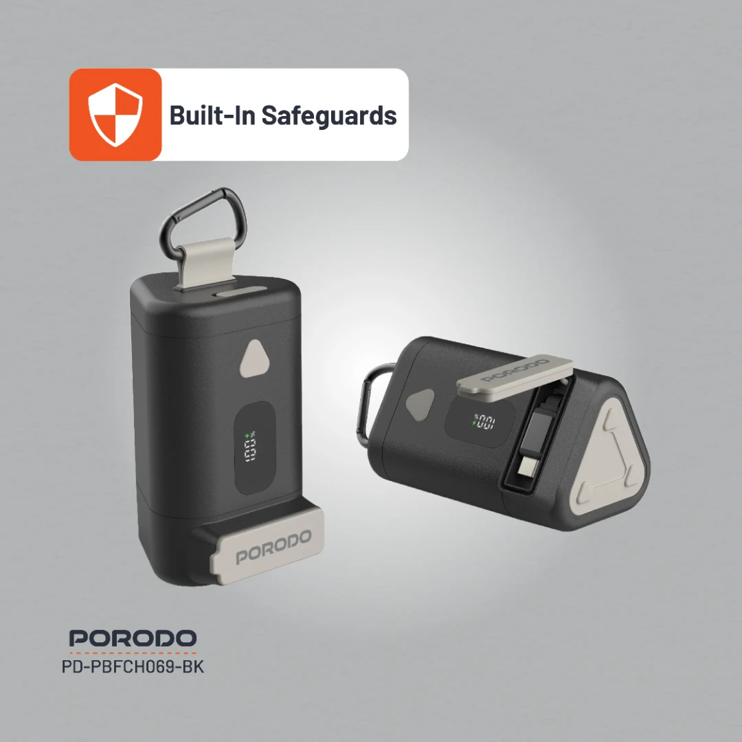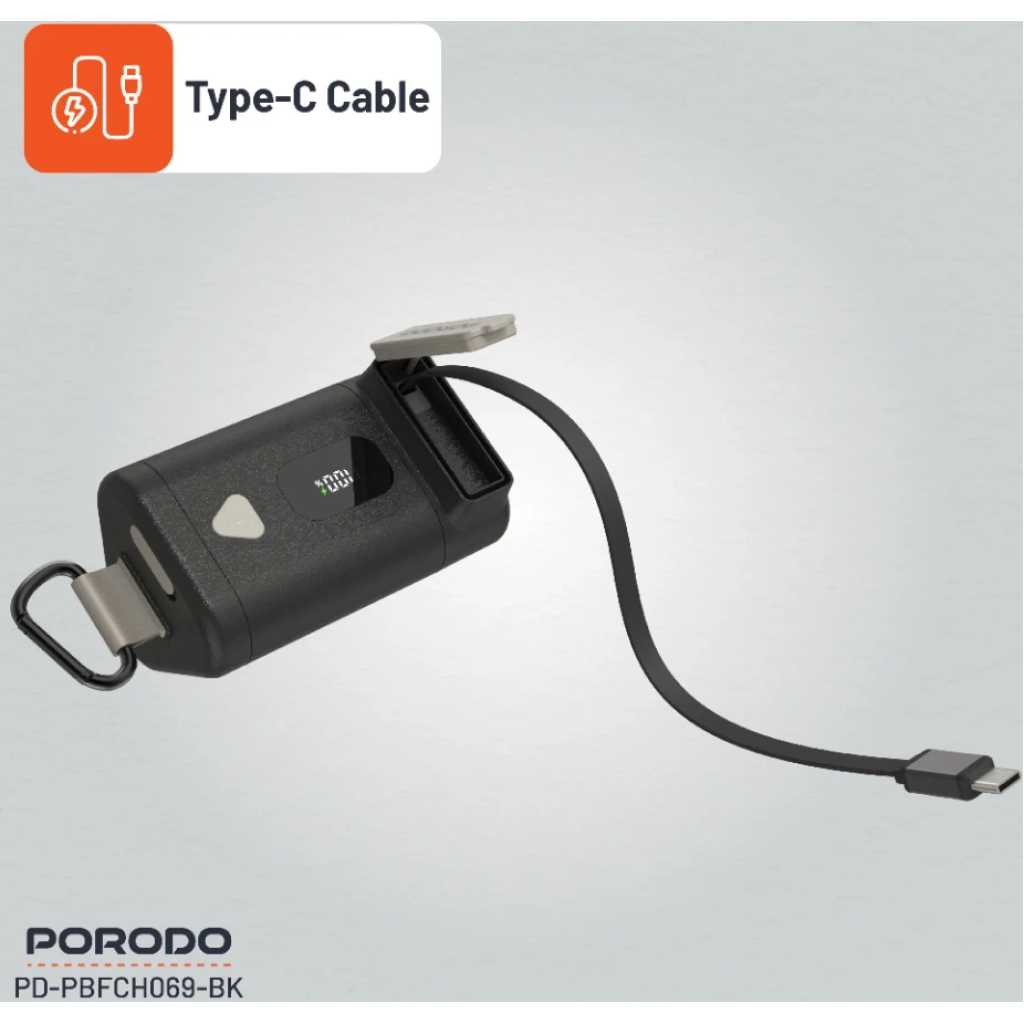 The Porodo 15000mAh Power Bank with a 70cm retractable Type-C cable offers an efficient and portable solution for powering your devices on the go. With a battery capacity of 15000mAh (55.5Wh), it provides ample energy to charge smartphones, tablets, and other electronics multiple times. The built-in 70cm retractable Type-C cable adds convenience, reducing cable clutter and making it easy to charge your devices without needing additional cables. The power bank supports PD 65W fast charging, delivering various output options via its Type-C ports. It provides DC 5V/3A, 9V/3A, 12V/3A, 15V/3A, and 20V/3.25A, with a maximum output of 65W, making it perfect for quick and efficient charging. The Type-C input also supports the same charging parameters, ensuring fast recharging of the power bank itself. This model is equipped with built-in safeguards to protect both your devices and the power bank from damage. It also includes a digital display for easy monitoring of battery levels and charging status. With an operating temperature range of 0°C to 40°C, the power bank operates optimally under normal conditions. Weighing 370g and measuring 101.5×61.5x57mm, this power bank is compact enough to be easily carried in your bag. Whether you’re traveling or at home, the Porodo 15000mAh Power Bank provides a reliable source of power for your devices, making it an excellent choice for those who need high capacity and fast charging on the go.