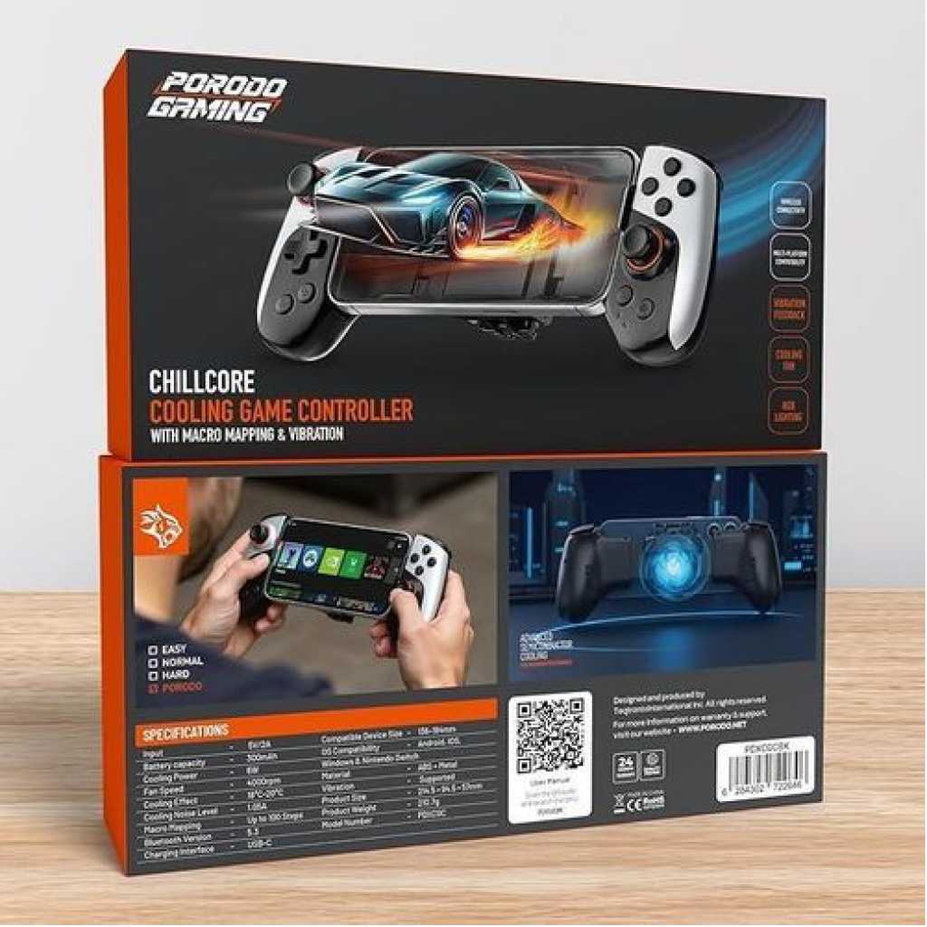 Vibration is a real delight for gamers, since it is not only the ultimate controller for cool gaming sessions but also the controller that blows out the gaming heat the most. It is like a dual baby cooling and heating gadget that does not surrender easily in the power struggle with heat, primarily device and gamer heat, which poses the risk of having an interrupted gaming session due to the device overheating. The 4000 RPM fan speed, which is the active cooling system, is the one that takes care of the heat, while the vibration feedback takes care of immersion by providing tactile sensations that are in tune with the game’s action. The macro mapping can be configured with 100 customizable steps that are specific to each user, which means every user can have complete control of the game. This controller is compatible with all platforms: Android, iOS, Nintendo Switch, and PC, and it is wireless, which means gamers can play anywhere they like without the restriction of wires. Moreover, the USB-C charging port is for fast recharging, and the LED lighting effect looks cool, adding a stylish touch to the whole setup. The ergonomic design allows the controller to be used for hours without causing any discomfort. Specification Input: 5V/2A Battery capacity: 300mAh Cooling Power: 6W Fan Speed: 4000RPM Cooling Effect: 18°C-20°C Cooling Noise Level: 1.05A Macro Mapping: Up to 100 Steps Bluetooth Version: 5.3 Charging Interface: USB-C Compatible Device Size: 136-184mm OS Compatibility: Android, iOS, Windows & Nintendo Switch Material: ABS + Metal Vibration: Supported Features Universal Phone Compatibility 300mAh Battery Active Cooling System Customizable Macro Mapping Wireless Connectivity Multi-Platform Compatibility Vibration Feedback Cooling Fan RGB Lighting User Manual Porodo Gaming Chillcore Cooling Game Controller with Macro Mapping & Vibration – Black