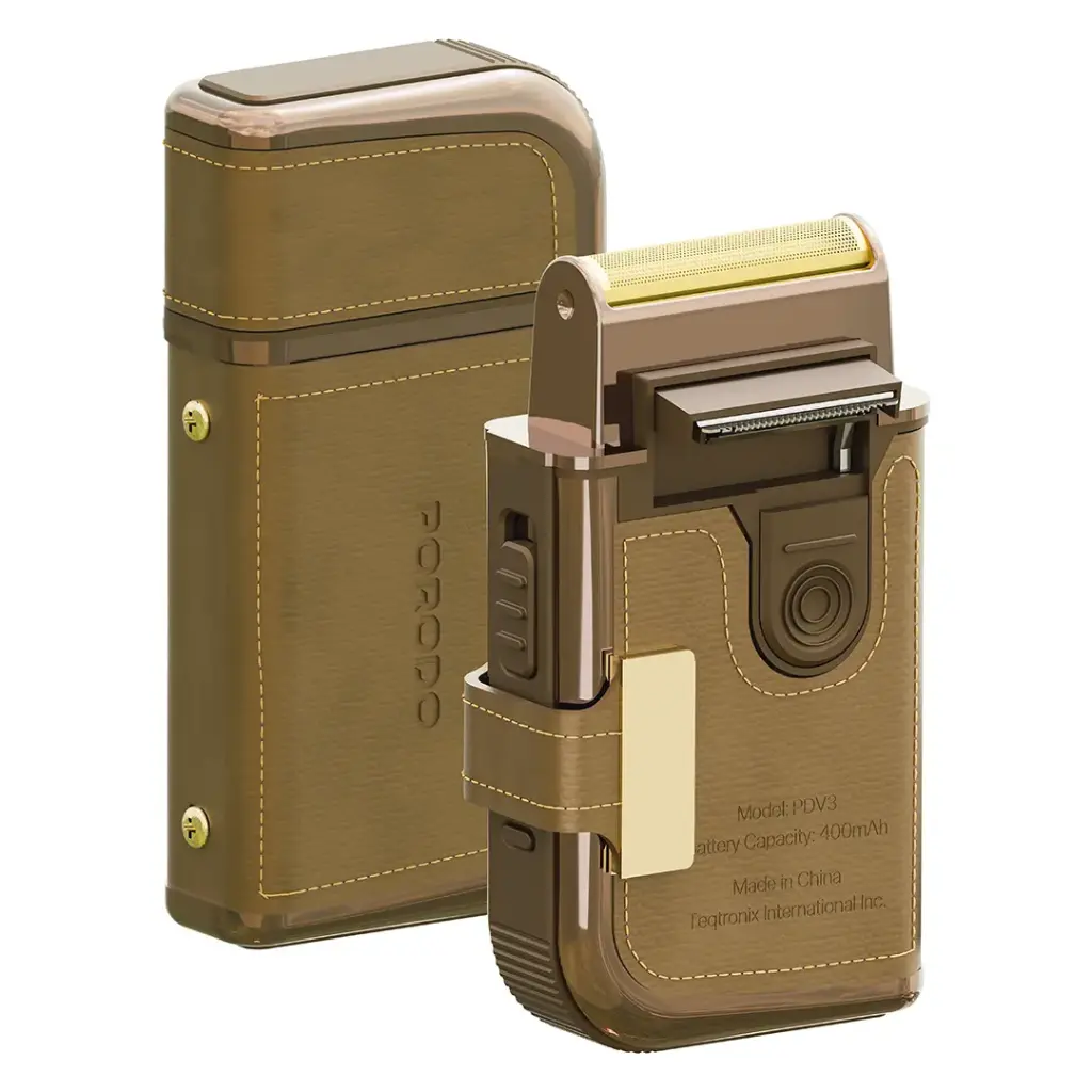 Clavis Multi-Functional Shaver Kit with Built-In Trimmer & Mirror The Porodo Clavis Multi-Functional Shaver Kit with Built-In Trimmer & Mirror – Brown provides users who need grooming services with three devices that function as a shaver, trimmer, and mirror, which they can use in one compact product. The system delivers a precise shave that protects skin through its design for achieving close shaves that maintain comfortable skin conditions without creating irritation. You can use the built-in trimmer and mirror to trim and shape your beard, while the rechargeable battery provides 60 minutes of working time when fully charged, and the device includes a USB-C charging port for fast and effective charging. The 8500 RPM motor delivers power for efficient grooming, while the cordless design allows you to move freely during your grooming sessions. The protective cap keeps the device clean while its compact design enables users to take it with them during their travels. People who need an all-in-one grooming tool that they can carry everywhere will find this product to be their perfect solution.