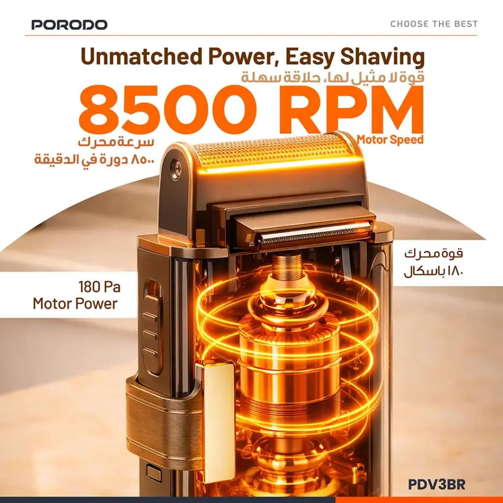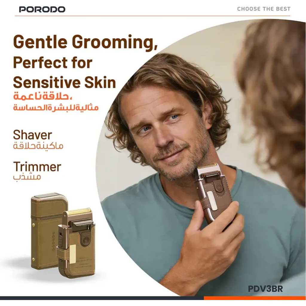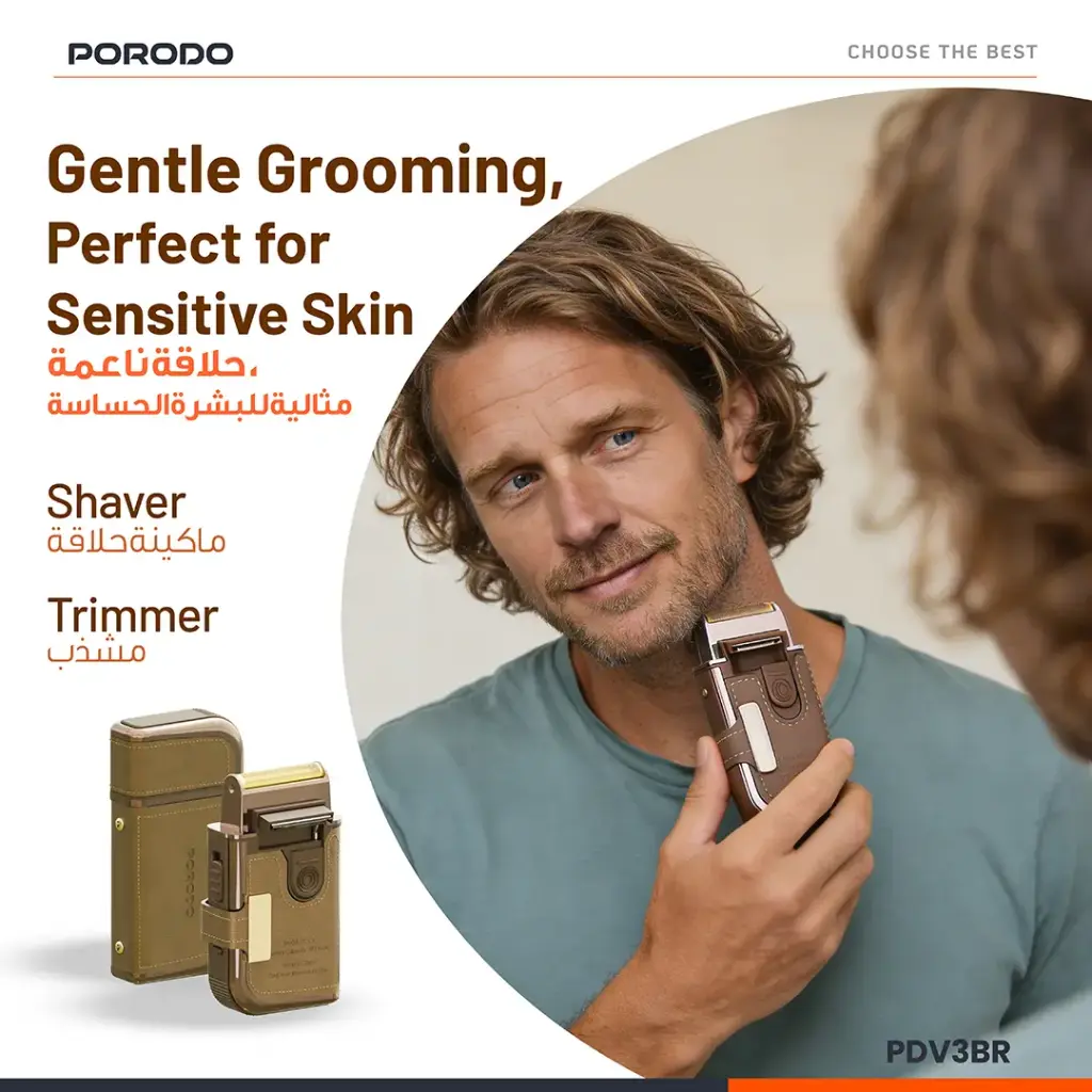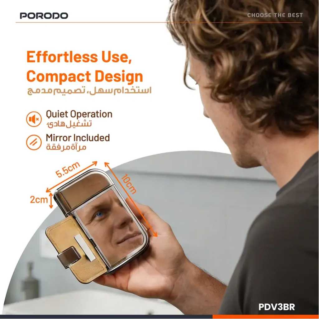 Porodo Clavis Multi-Functional Shaver Kit with Built-In Trimmer & Mirror, 180Pa Motor Power, 8500RPM Motor Power, 60 Minutes Working Time, 400mAh Battery Capacity, Brown