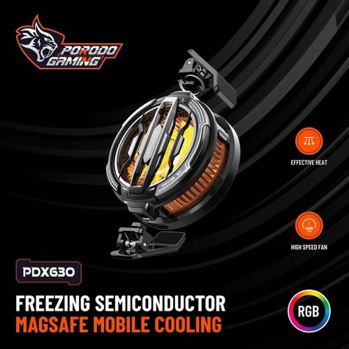 Key Features: Stylish RGB LED Lighting: The cooling device also features RGB LED lights, adding a stylish touch to your gaming setup. You can customize the lighting to match your preferences. This adds an extra layer of visual appeal while keeping your phone cool. Powerful Performance: Running on a 5V/3A input, the cooling system delivers consistent cooling power. It ensures your device stays cool even at high ambient temperatures of up to 25°C. This means you can game without worrying about performance drops due to heat. User-Friendly Design: The device features removable and rotating clips, making it easy to attach or adjust for your comfort. Its detachable front cover allows for easy cleaning, keeping the cooling system in top shape. This thoughtful design makes it simple to maintain and use Easy Mounting Options: You can attach this cooling device in two ways. It easily snaps on for wide range of devices as it is compatible with MagSafe. For other phones that does not have this technology, a spring clip securely holds the device in place. Effective Cooling Technology: The Porodo Gaming Freezing Semiconductor Mobile Cooling device uses a 15W semiconductor system to keep your smartphone cool. This technology ensures your phone stays at the right temperature during long gaming sessions. With a 4400 RPM fan, it efficiently moves air to prevent overheating.