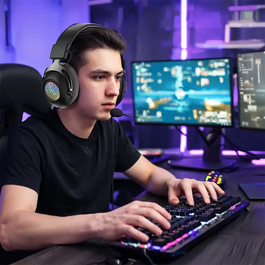Precise Audio Delivery: Immerse yourself in a new level of sound performance with the 50mm dynamic audio drivers engineered to produce deep bass, balanced mids, and crisp treble. With a frequency response of 20Hz–20kHz, this headset delivers every sound cue, from subtle footsteps to explosive effects with clarity and precision, giving you the competitive advantage you need in every game. Infinity Mirror RGB Lighting: Enhance your gaming station with Infinity Mirror RGB lighting that creates a futuristic and dynamic visual display. The reflective mirror effect amplifies the RGB glow, transforming your setup into a captivating environment that reacts to your mood and gameplay atmosphere, perfect for streamers, competitive gamers, and aesthetic enthusiasts alike. Detachable Microphone with Quick Mute: Stay in full control of your communication with the detachable omnidirectional microphone, designed for accurate voice pickup and background noise reduction. The quick-mute button allows instant muting during live sessions or calls, while the adjustable mic boom ensures optimal positioning for consistent clarity in team chats or streaming commentary. Ergonomic Design & Premium Build: Built with an aluminum alloy frame for durability and soft, breathable ear cushions, this headset offers long-lasting comfort even during extended gaming sessions. Its adjustable headband evenly distributes pressure, reducing fatigue and enhancing the fit for all-day wear, making it ideal for marathon gamers, content creators, or professional streamers. Multi-Platform Connectivity: Enjoy seamless compatibility across multiple platforms with dual 3.5mm audio and mic connectors, along with a USB-A plug for RGB illumination. No matter where you’re gaming on, Porodo Infinity Mirror RGB Headset is compatible with PS5, PS4, Xbox, PC, or even mobiles, and it ensures consistent, high-quality sound output and vibrant lighting no matter your setup. What You Get: Porodo Infinity Mirror RGB Headset, 24-Hour Customer Service, Lifetime Technical Support and Free 12 + 12 Months Warranty.