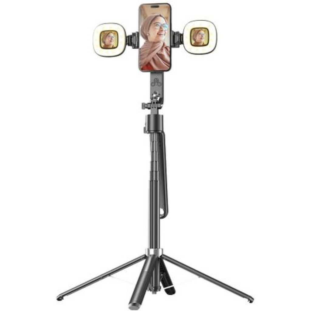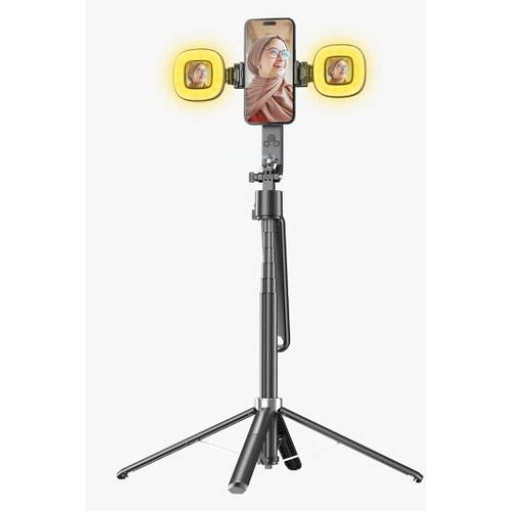 Suppose you are looking forward to entering into the world of content creation. In that case, you need to have the Porodo Selfie Stick Pro X. As to its other features that fit the design, the selfie stick possesses an AI tracking attribute that follows your face wherever you jump, hence requires no efforts to be made by the user, with its 360° panoramic tracking. To provide lighting, there are two rings equipped with three LED lights (nineteen white ones and sixteen ones which are warm ones). Finally, the Porodo Selfie Stick Pro X model takes less than three hours to charge fully and is used for about six hours. Specifications Material: ABS + aluminum Alloy Battery Capacity: 1500mAh, 300mAh (Lights) Input: 5V/1A Recharge Time: 3H Working Time: Up to 6H Bluetooth: V5.2 Transmission Range: 10M Maximum Height: 1.8M Brightness Settings: 9 Levels LED Count: 35 LED (19 White, 16 Warm) Features Panoramic Tracking Stable Quad-Base Detachable Lights Aluminum Alloy