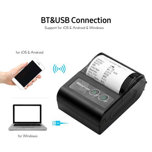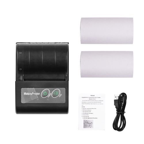 Portable 58mm Wireless BT Mobile Thermal Receipt Printer. Features: Dual-mode design, support USB wired and BT connection, can be printed at a distance, more convenient to use. Thermal printing, no ink cartridge/carbon ribbon required, saves the cost of expensive consumables, clear printing. 58mm paper width, 48mm effective print width, support 203dpi(8dots/mm) resolution. Small size and lightweight, easy to carry around. Built-in 1500mAh large capacity rechargeable lithium battery, low power consumption, long standby time. Wide application, widely used in supermarket, restaurant, retail store, warehouse, parking lot, etc. Features: Dual-mode design, support USB wired and BT connection, can be printed at a distance, more convenient to use. Thermal printing, no ink cartridge/carbon ribbon required, saves the cost of expensive consumables, clear printing. 58mm paper width, 48mm effective print width, support 203dpi(8dots/mm) resolution. Small size and lightweight, easy to carry around. Built-in 1500mAh large capacity rechargeable lithium battery, low power consumption, long standby time. Wide application, widely used in supermarket, restaurant, retail store, warehouse, parking lot, etc. Specification: Color: Black Print method: Thermal print Connection type: BT/USB Paper width: 58mm Print width: 48mm Print speed: 60mm/s Roll diameter: Max. 40mm Resolution: 203dpi (8dots/mm) Battery capacity: 7.4V/1500mAh System supported: for Android, iOS, Windows Item size: 10.2 * 7.6 * 4.5cm /4.02 * 2.99 * 1.77in Packing list: 1 * Thermal printer 1 * USB cable 2 * Roll of paper 1 * User manual