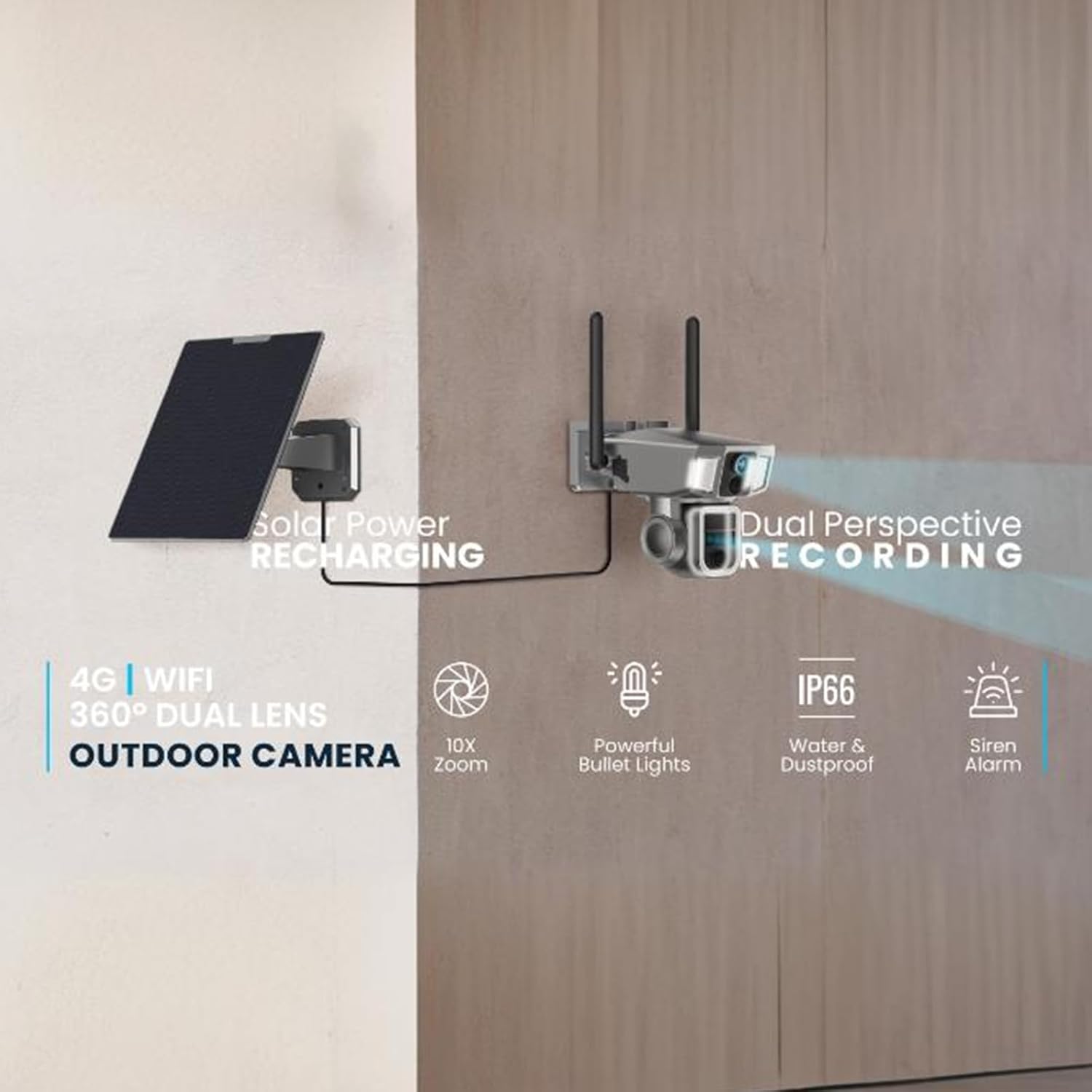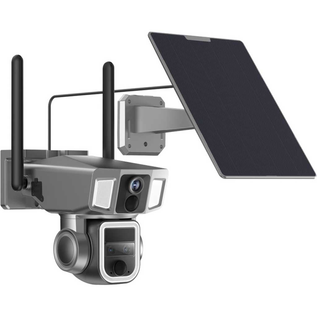Key Features: 【 】Simultaneously captures with pan, tilt, and zoom features, ensuring comprehensive surveillance coverage from multiple angles. 【 】Whether you’re checking for security threats or just keeping an eye on your property’s perimeter, this feature ensures that no detail goes unnoticed, even from afar. 【 】Enhances night visibility with intense illumination, ensuring clear, detailed recordings in low-light conditions. 【- 】Supports continuous recording throughout the day, providing security coverage without interruption. 【 】Comes with a solar panel, allowing the camera to recharge naturally and maintain power for extended periods. 【- /】Enables communication through built-in audio and microphone, providing a hands-free solution for speaking or listening remotely. 【 /】Engineered for outdoor use, this camera withstands harsh weather conditions and dust, ensuring reliable performance in any environment. 【 】The package includes ° , , . , , / , a user manual for easy setup, infinite for ongoing support, and a + .