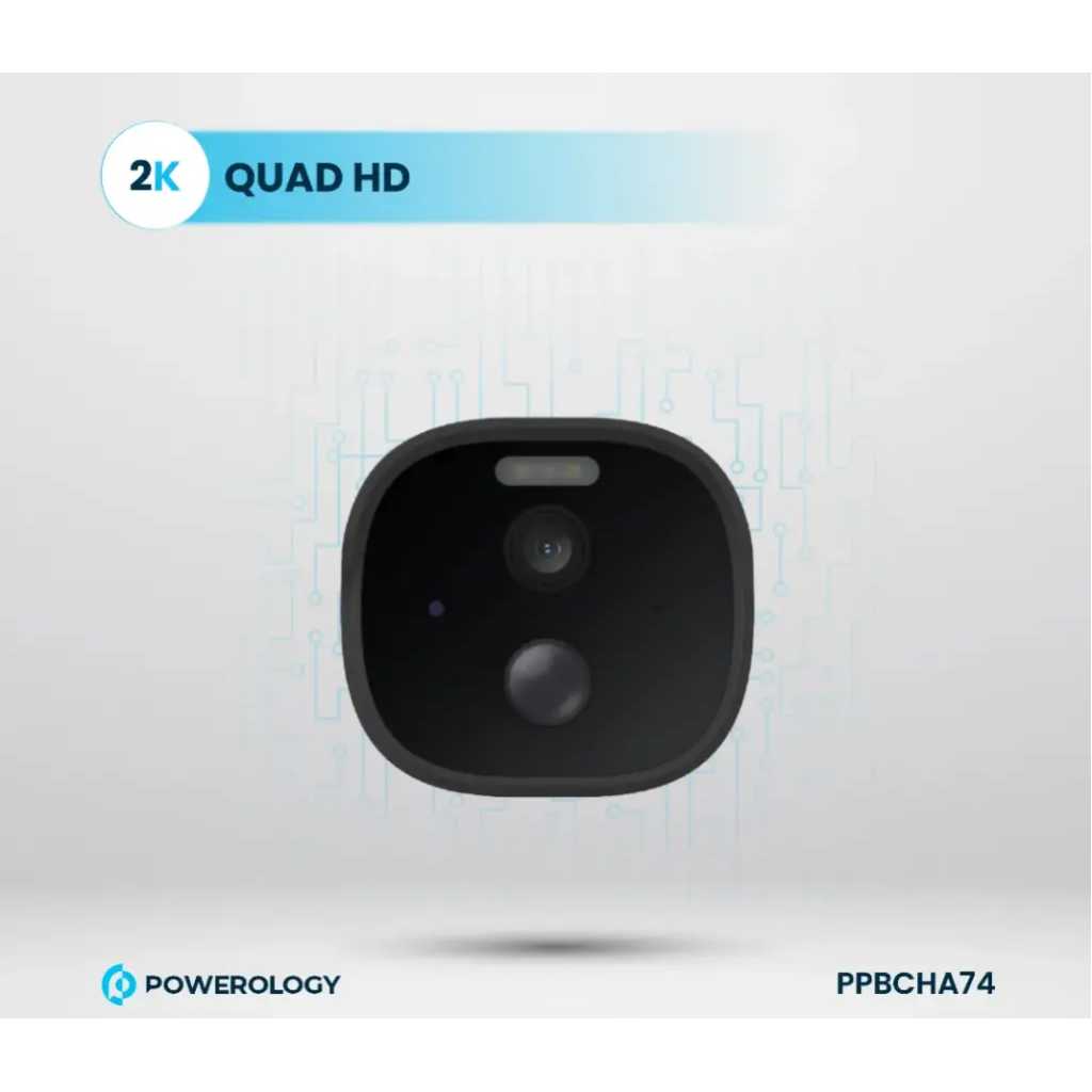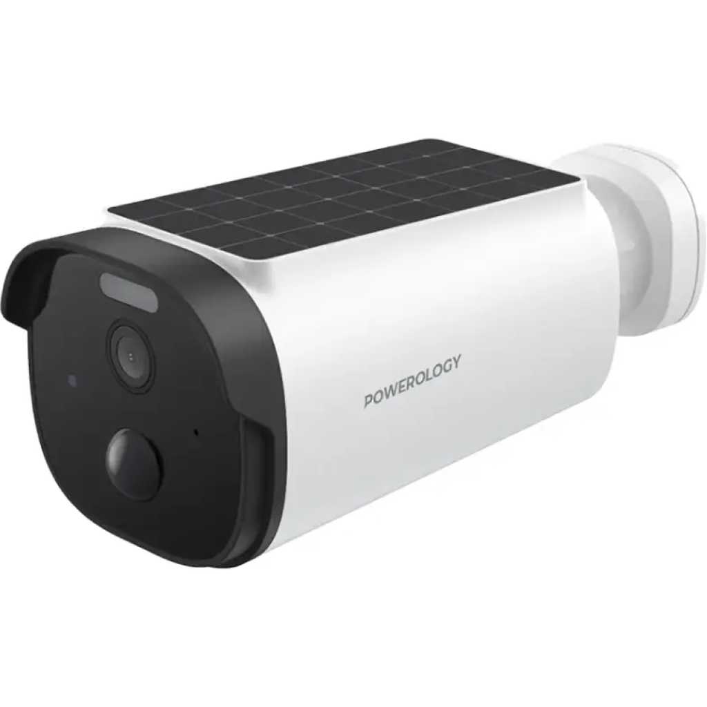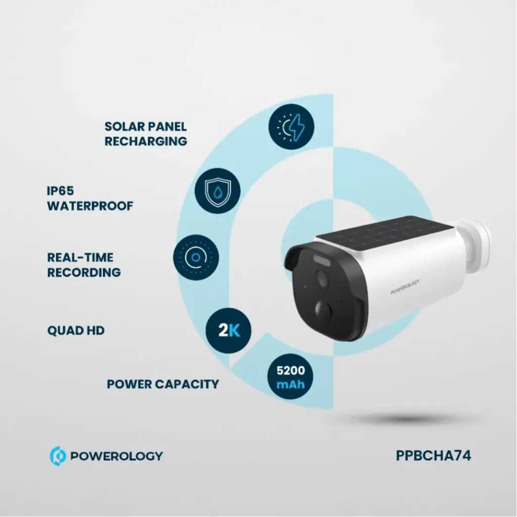 Powerology Built-in Solar Outdoor Camera 256GB 5200 mAh 20fps / IR Night Vision / Two-Way Audio / Motion Detection / 2K Quad HD Surveillance Camera / Dust Resistance / Mobile App Support (Android, iOS