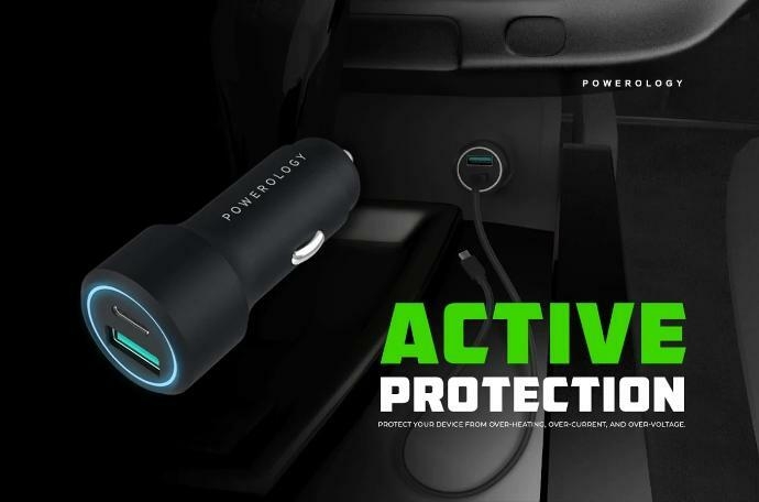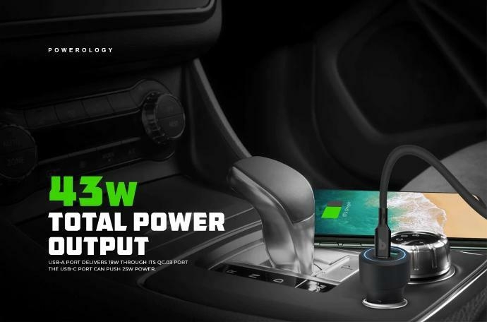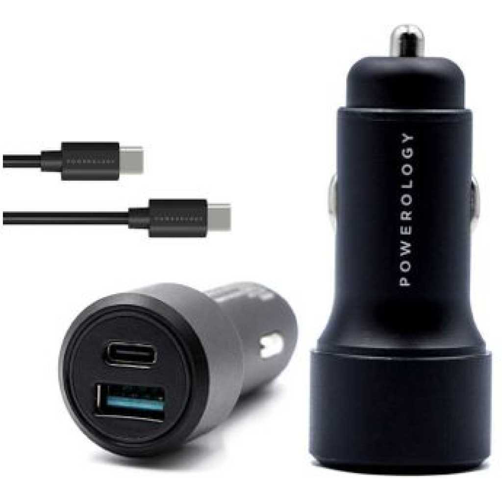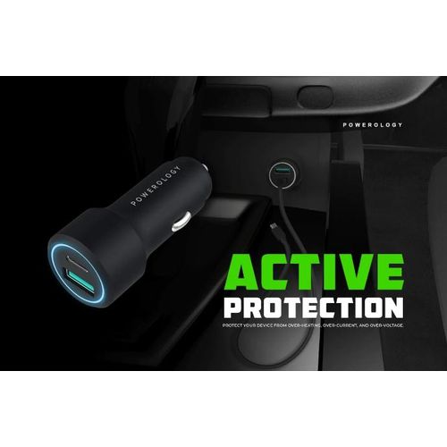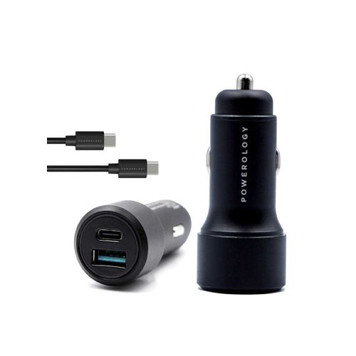 Powerology Car Charger Dual Port Type C PD Fast Charging 3.0 – Black Powerology Ultra-Quick Car Charger with USB-C Cable 43W Total Power Output The maximum amount of power that can be delivered by a charger is called power delivery. With this in mind, this product is capable of delivering 45W power in total. This means it can charge any device with the same capacity. In addition to that, this power capacity will be divided when both ports are in use. USB-A port delivers 18W through its QC.03 port. Similarly, the USB-C port can push 25W power. Having a charger that can keep your devices charged when you are on the go is an additional advantage that we can get from your car. It is convenient to have a car charger. Also, it is important to have a car charger with a detachable cable. Sometimes our cars do not have a USB connection auxiliary. Likewise, our cars might not support our desired device chargers. Powerology offers you the best solution. The Powerology aluminum ultra-quick 43W car charger 25W PD + QC3.0 with USB-C to USB-C cable meets all your charging needs. Active Protection The Powerology aluminum ultra-quick 43W car charger has an active protection feature. That means it secures your device against overcharging. Not only that, but it can also protect your device from overheating, over-current, and over-voltage. Features USB-C Charging Fast charge 18W QC 3.0 Output USB-C to USB-C cable included Aluminum Body 25w Power delivery Length 0.9m Specifications Input: DC 12-24V QC3.0 Output: 5V/3A, 9V/2A, 12V/1.5A 18W PD Output: 5V/3A, 9V/2.77A, 12V/2.08A 25W Total Output: 43W Material: Aluminum Shell Special Feature: LED Light Ring