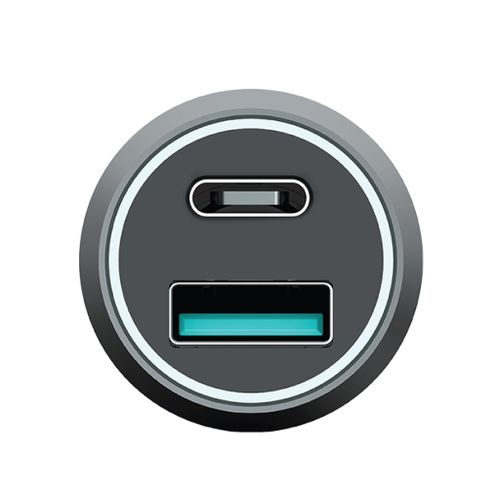 Key Features: Powerology Car Charger Dual Port Type C PD Fast Charging 3.0 – Black USB-C Charging Fast charge 18W QC 3.0 Output USB-C to USB-C cable included Aluminum Body 25w Power delivery Length 0.9m Specifications Input: DC 12-24V QC3.0 Output: 5V/3A, 9V/2A, 12V/1.5A 18W PD Output: 5V/3A, 9V/2.77A, 12V/2.08A 25W Total Output: 43W Material: Aluminum Shell Special Feature: LED Light Ring
