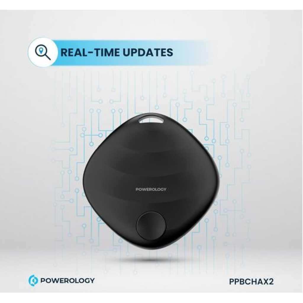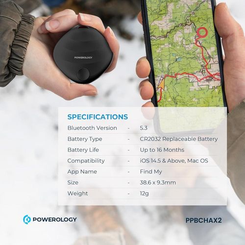 Powerology Find My Smart Tag, Bluetooth 5.3, Compatible with Apple Find My Compatible With iOS 14.5 and Above & Mac OS, Real-Time Updates, Replaceable Battery, Traqueur intelligent