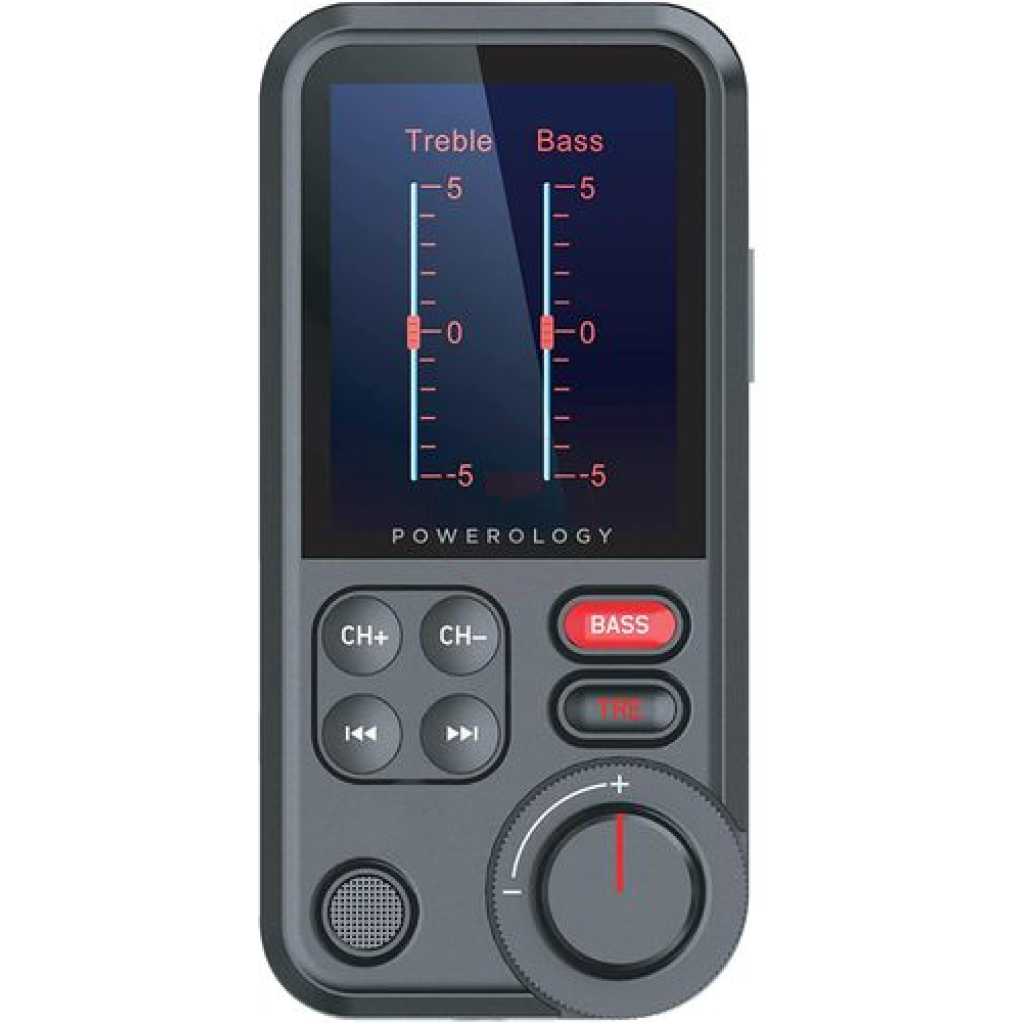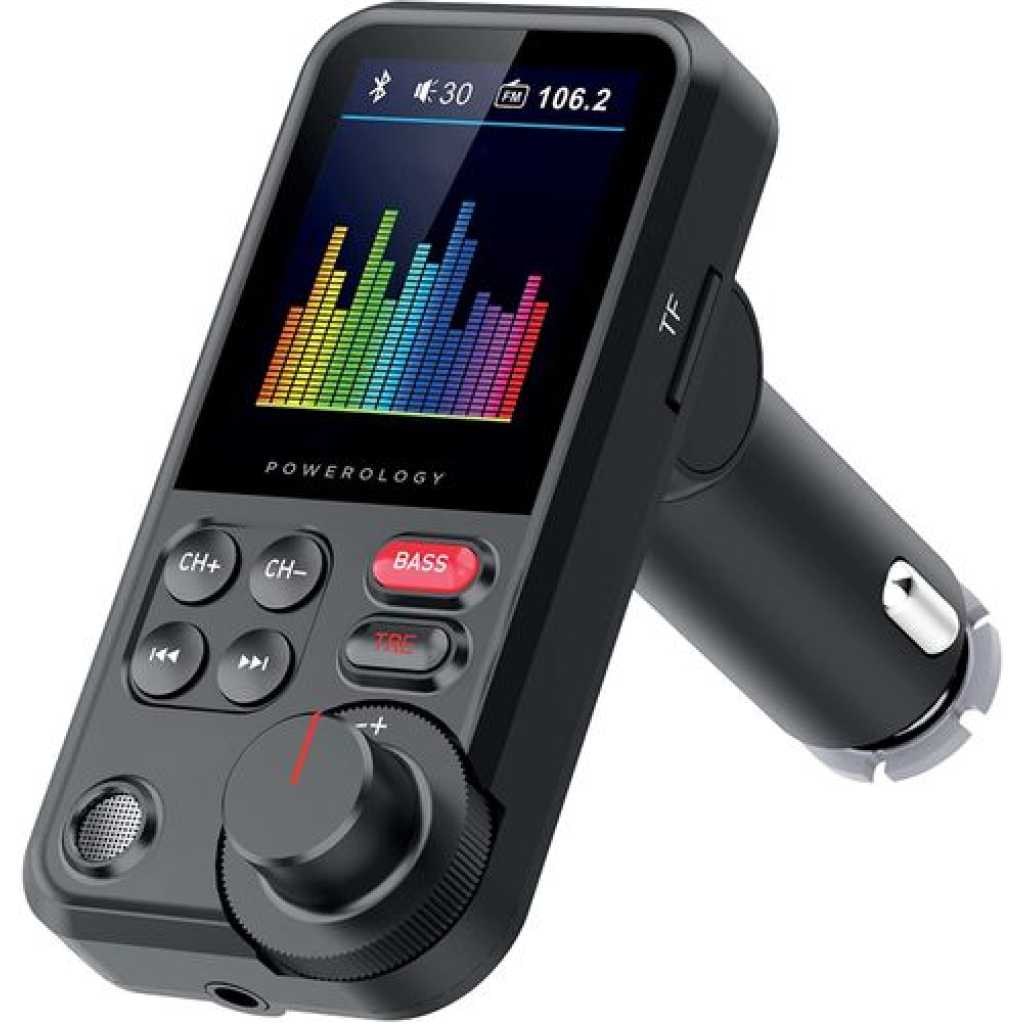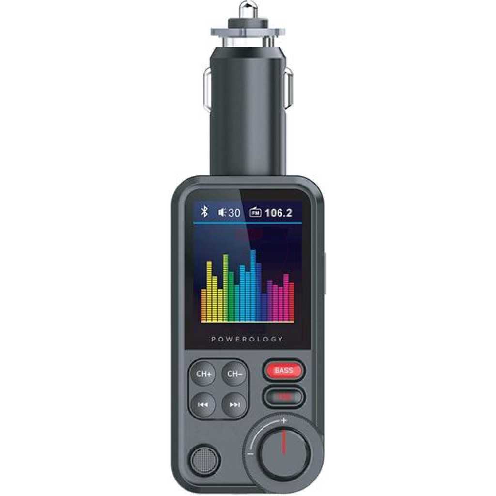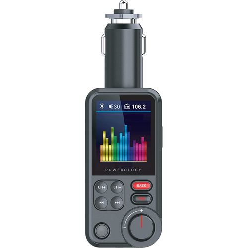 Powerology FM Transmitter Pro Car Charger Looking for a gadget to act as the go-between for your phone and your car? The Powerology Bluetooth FM Transmitter car charger is a great option. It features dual USB charging ports, which allows you to boost up more than one device by the quick charging advantage. This useful car charger allows you to Stream music and calls to your car stereo, with this exceptional multi-function car kit with an FM transmitter. Just plug it into your car lighter socket, and you are ready to go. Intelligently Multi-Functional Engage in the call function with the hands-free option along with the built-in mic. As has been noted, this feature streams music and calls Through your car speakers. This is an FM transmitter that transforms your smartphone or tablet into an FM Transmitter, so you can enjoy a wide range of music heard through your car’s much louder and clearer speakers. Listen to your music, podcasts, or audiobooks in style using the Powerology Bluetooth FM transmitter car charger. You can enhance the music and audio quality with the bass adjust option. Hands-Free Calling Via Bluetooth With the built-in microphone and Bluetooth capabilities, the Powerology allows you to make and receive phone calls – providing a hands-free solution for your conversations when in the car for your safety and convenience. Don’t risk losing control of the steering wheel or breaking the law by holding a phone up to your ear. Instead, use the powerology transmitter to make and receive calls – all through your car’s stereo system. Micro-SD and USB flash slot Containing a Micro-SD and a USB flash slot that has 32GB of space, makes this amazing car charger even more convenient to use. That being said, all you need to do is just create your favorite music playlist and enjoy your road trip. Features Supports Micro SD & USB Flash Slot Up to 32GB Max Bluetooth Version Connectivity Quick Charge Output 18W Bass & Treble Adjuster 1.8″ Colour Display Superior Mic