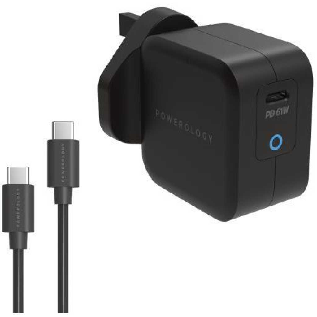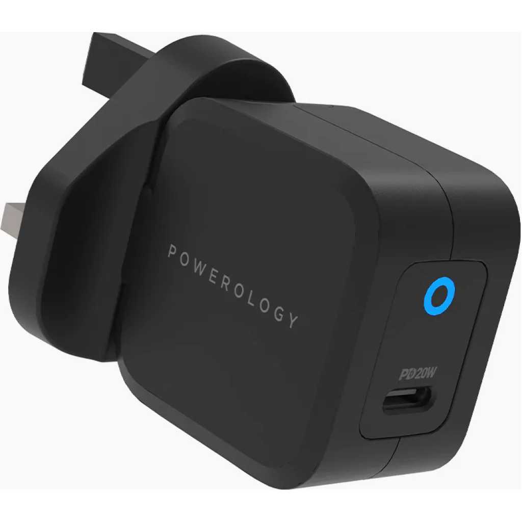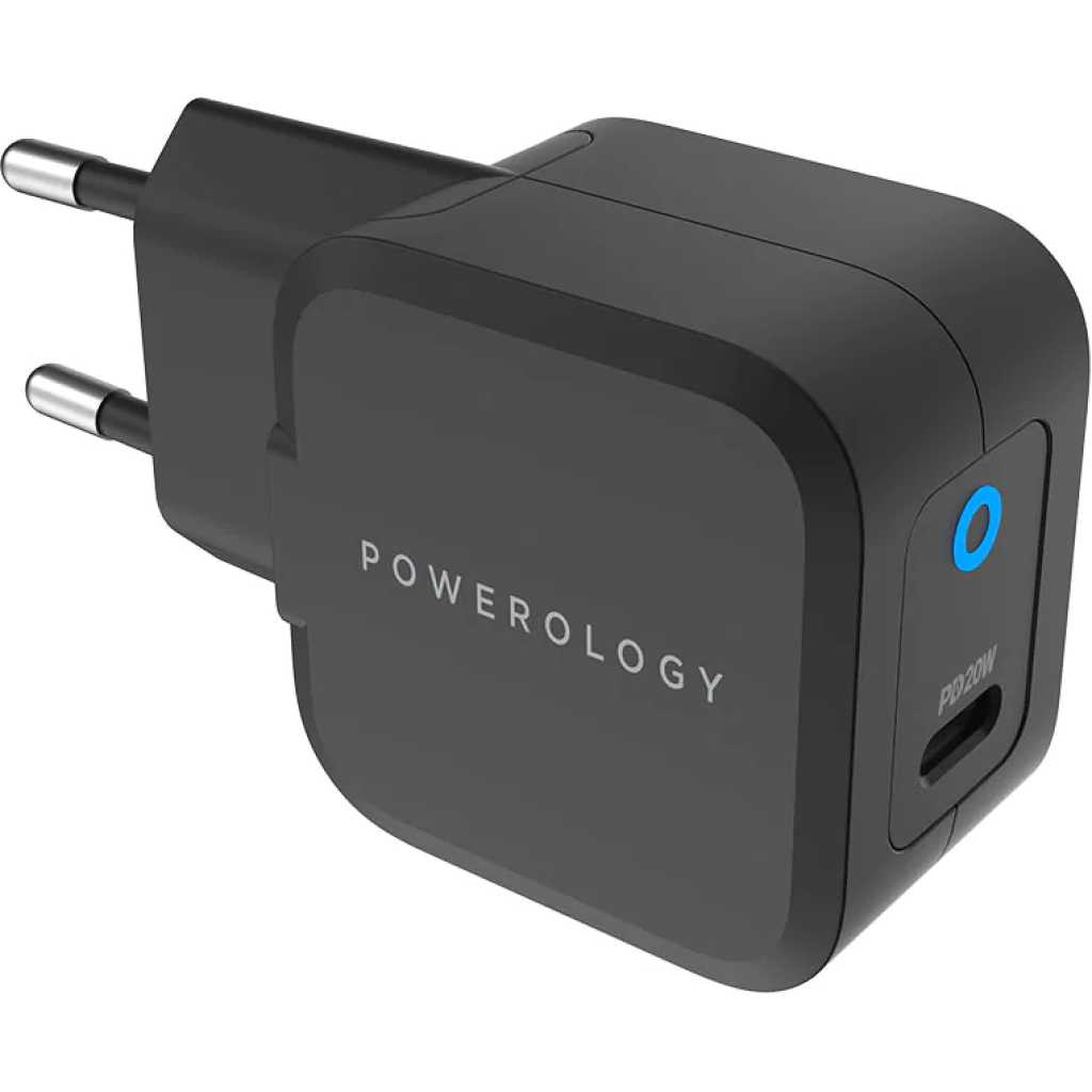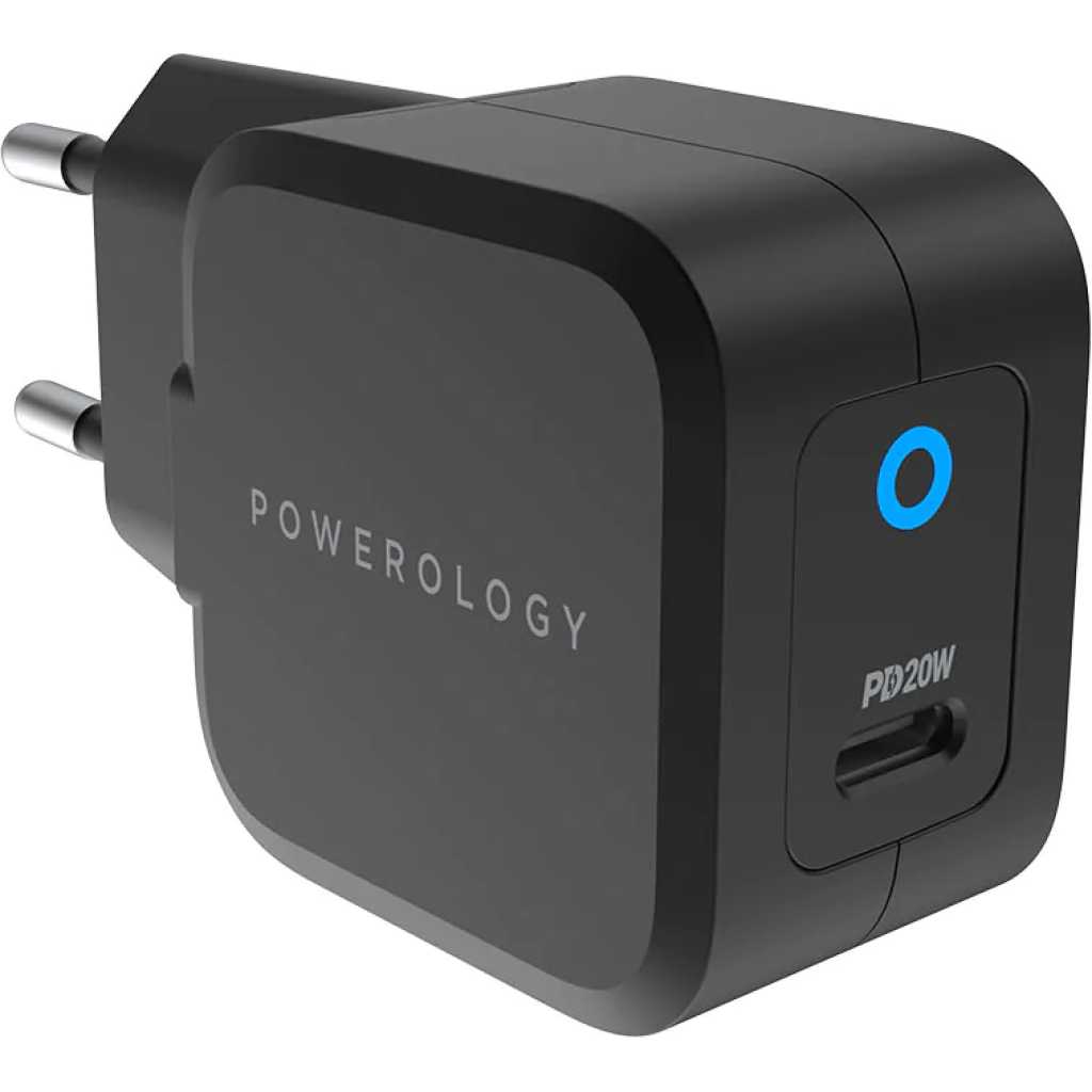 Key Features: Powerology Ultra-Compact 20W PD GaN Charger – Black. Features Charges your phone and iPad from 0%-60% in 35 Minutes Output: DC 5V/3A 9V/2.22A 12V/1.67A PowerDash Fast & Efficient Charge Input: AC 100-240V 50/60Hz USB-C Fast Charging UK 3Pin Plug Specification Port: USB Type-C Fast Charger: Yes Plug: UK 3Pin Plug Wattage: 20W Surface: Matt Surface Input: AC 100-240V 50/60Hz Output: DC 5V/3A 9V/2.22A 12V/1.67A Compatible Devices: Cellular Phones, MacBook, Tablets, iPods Dimension: 4.2 x 2.9 x 4.2 cm Weight: 95 Grams Color: Black