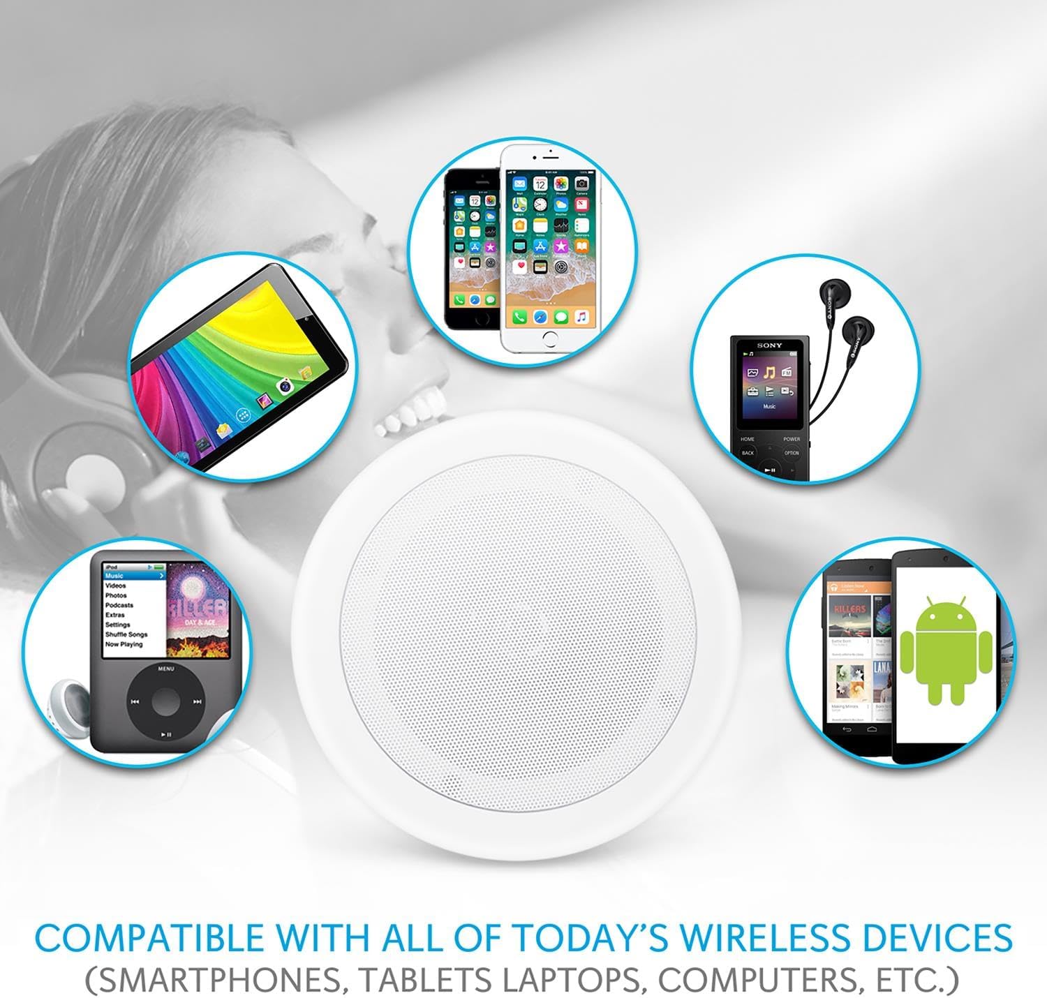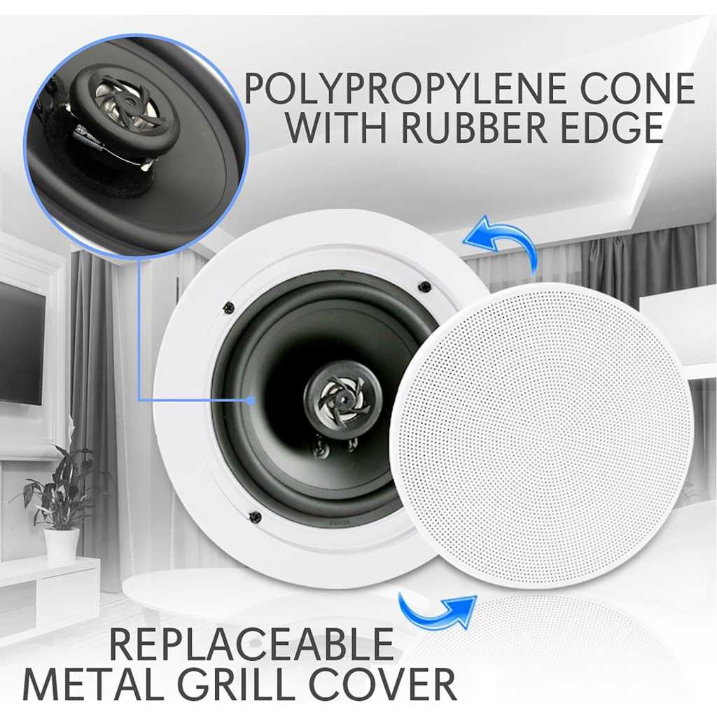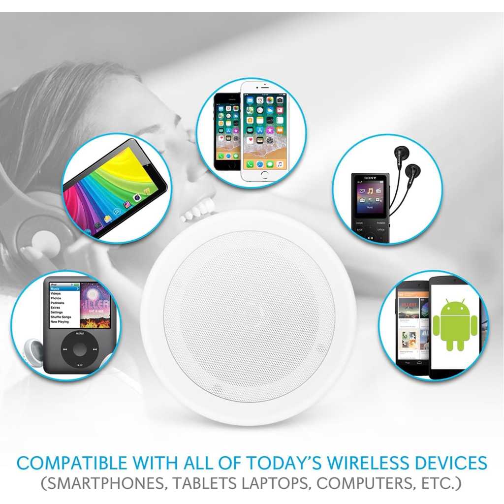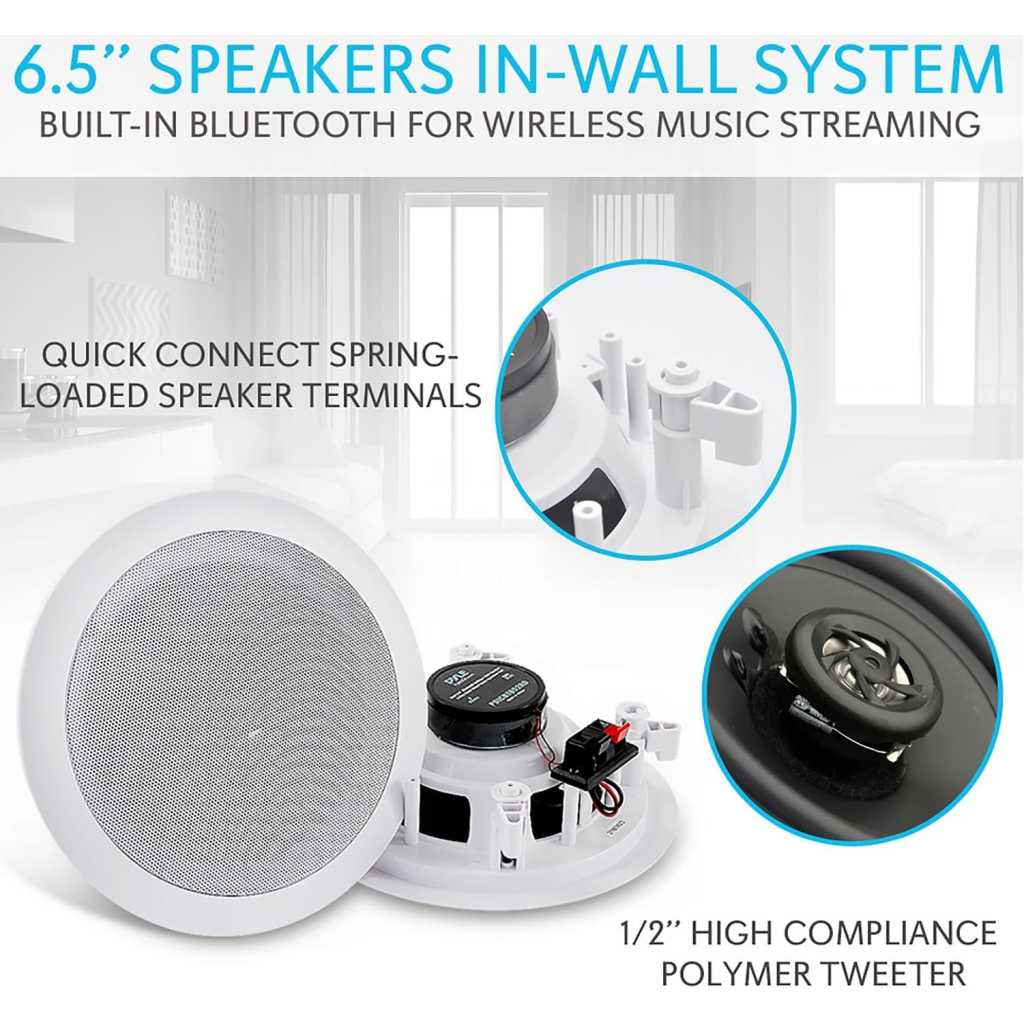 Key Features: BLUETOOTH – Built-in Bluetooth no hassle wireless music streaming from all your favorite Bluetooth enabled devices. Perfect for incredible stereo sound in any room in your home from speakers you can barely see without using any floor or shelf space. SPEAKER GRILL – Includes built in round stain resistant speaker grills. Match existing flush mounted designs in your home or workplace for a clean look & achieve wide-range sound performance without compromise. SEAMLESS INTEGRATION – Perfect sound wherever you need it. Great for existing home theater systems and custom applications this Pyle 2-way in-ceiling or in-wall speaker system will deliver on-demand crisp audio sound clarity all the time. FLUSH MOUNT DESIGN – Compact flush mount design for simple easy installation in-wall / in-ceiling , or pre-cut speaker openings, for in home use, office, professional, or custom audio applications on any flat surface. EASY TO INSTALL – Includes a cut-out size template & quick connect spring-loaded speaker terminals with spring loaded fixing clips for simple, easy, no hassle installation with included speaker connection wire, bluetooth Controller & power supply.
