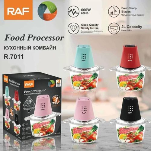 Experience efficient and precise meat grinding and chopping with the RAF Stainless Steel Meat Grinder Chopper. Powered by a 1000W motor, it effortlessly processes meat and other ingredients. The durable stainless steel blades ensure precise cutting and grinding. With versatile multi-functionality, this food processor can handle various types of food. Choose between the 700mL capacity options to suit your needs. Easy to use and clean, it is a must-have kitchen appliance for every home chef. Specifications: Brand: Raf Model: R:7011 Power: 240W Material: Stainless steel Capacity: Available in 2L options Color: Multicolor Dimensions: [ 22 x 12 x 32 cm ] Package Includes : 1 x Raf Stainless Steel Meat Grinder Chopper 1 x User Manual