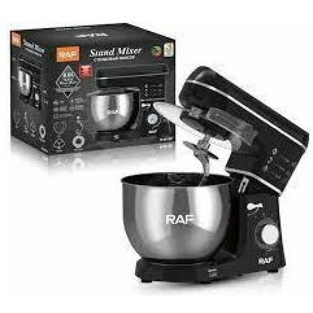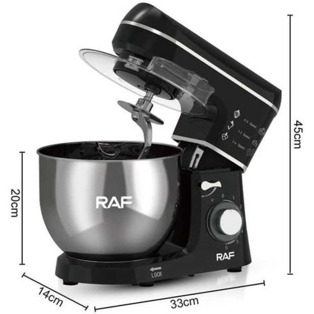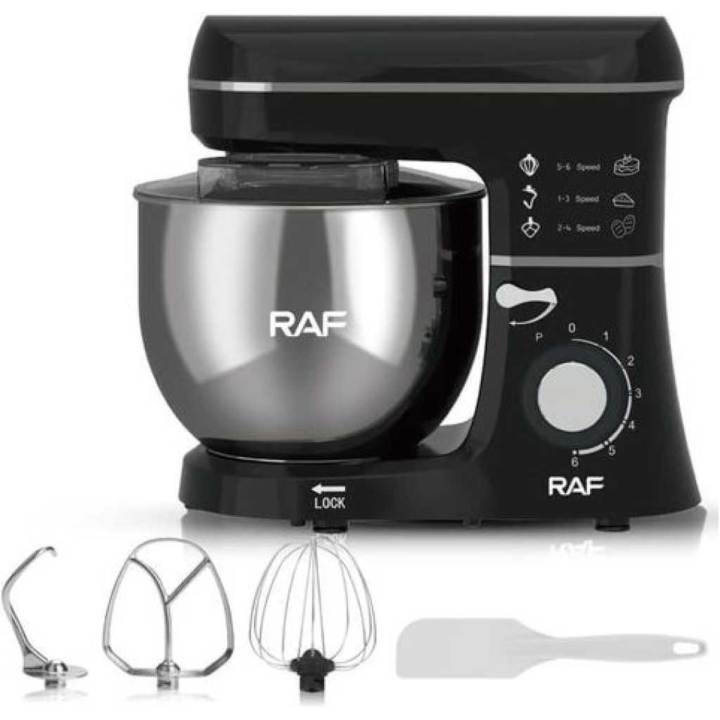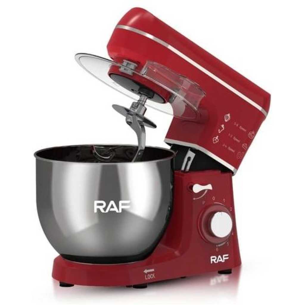 RAF 6-Speed Kitchen 8L Electric Food Stand Mixer Kneading Bread Dough Mixer- Multicolor A multiple-speed hand mixer will meet all of your mixing needs. A slower start, a zero speed gives you a smooth and trouble-free start. The hand mixer has easy-to-reach buttons and a slanted handle that offers a comfortable grip. You will feel more comfortable when doing kitchen work with the hand mixer. The impressive design and flawless construction will save you time cleaning it. You can clean it with a single damp cloth. The stand mixer is perfect for food preparation on different occasions, like daily cooking at home, birthday parties, bakery, and so on.