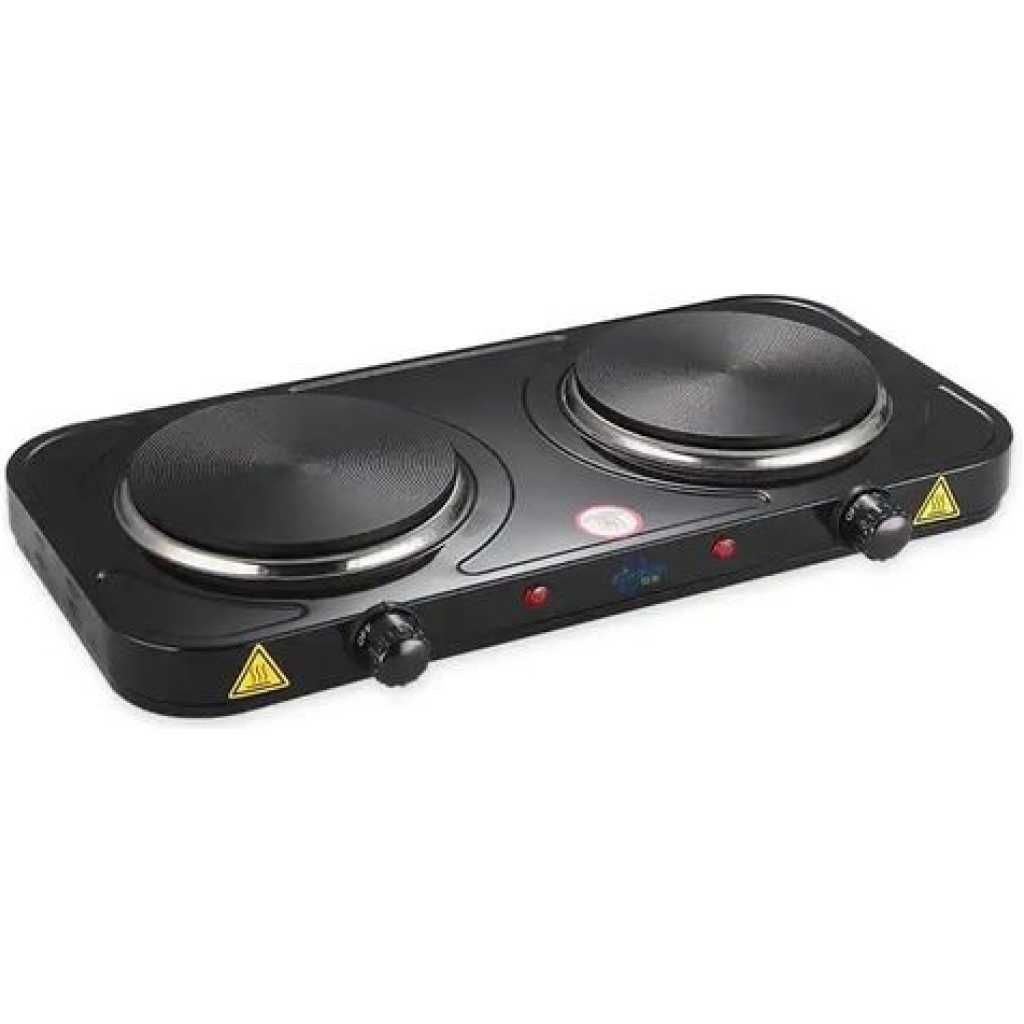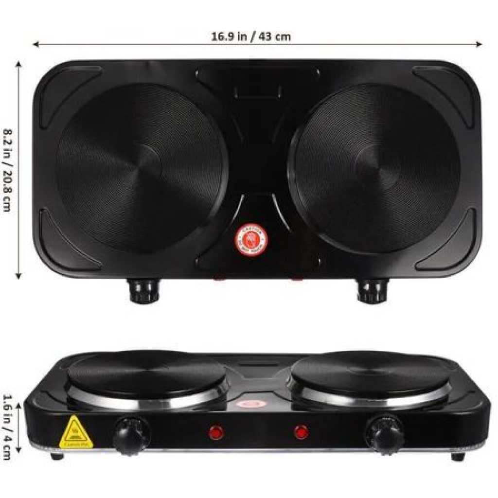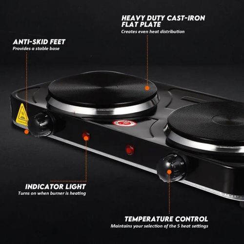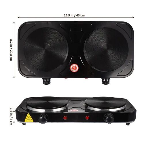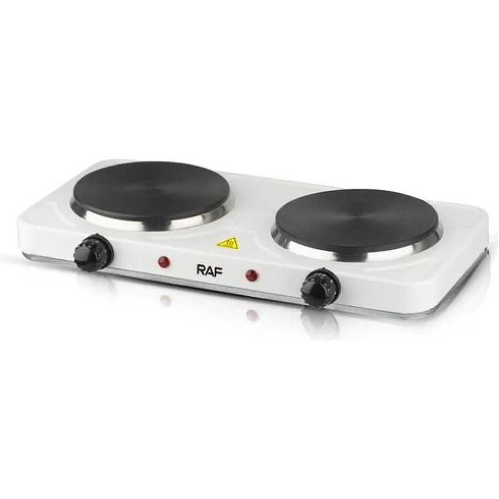 RAF Electric Ceramic Stove 1000+1000 Watts cooking hot plate with temperature control overheat protection electric cooker 2000 watts- Black This portable and easy-to-use appliance now allows you to cook easily and efficiently wherever you are. The adjustable thermostat gives you complete control of your cooking while the safety shut-off and the non-skid features ensure the product is safe to use. This elegant and powerful appliance would be a great addition to your kitchen. The RAF electric 2 burner Hotplate makes cooking faster and easier. The cooker is portable, energy-efficient, and affordable. Unlike other regular burners, the rapid heat and cool mechanism is a time and energy saver. Heat control knobs ensure you regulate your cooking to preferred temperatures. This portable single spiral hot plate has a temperature control knob and comes with a chrome drip pan which makes it easy to clean. Has efficient energy consumption with automatic switch temperature control.
