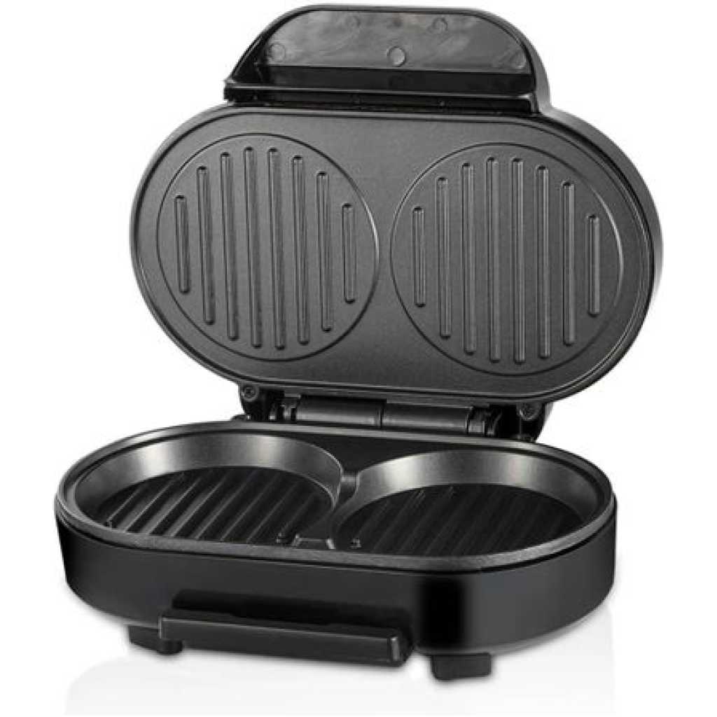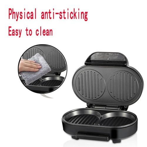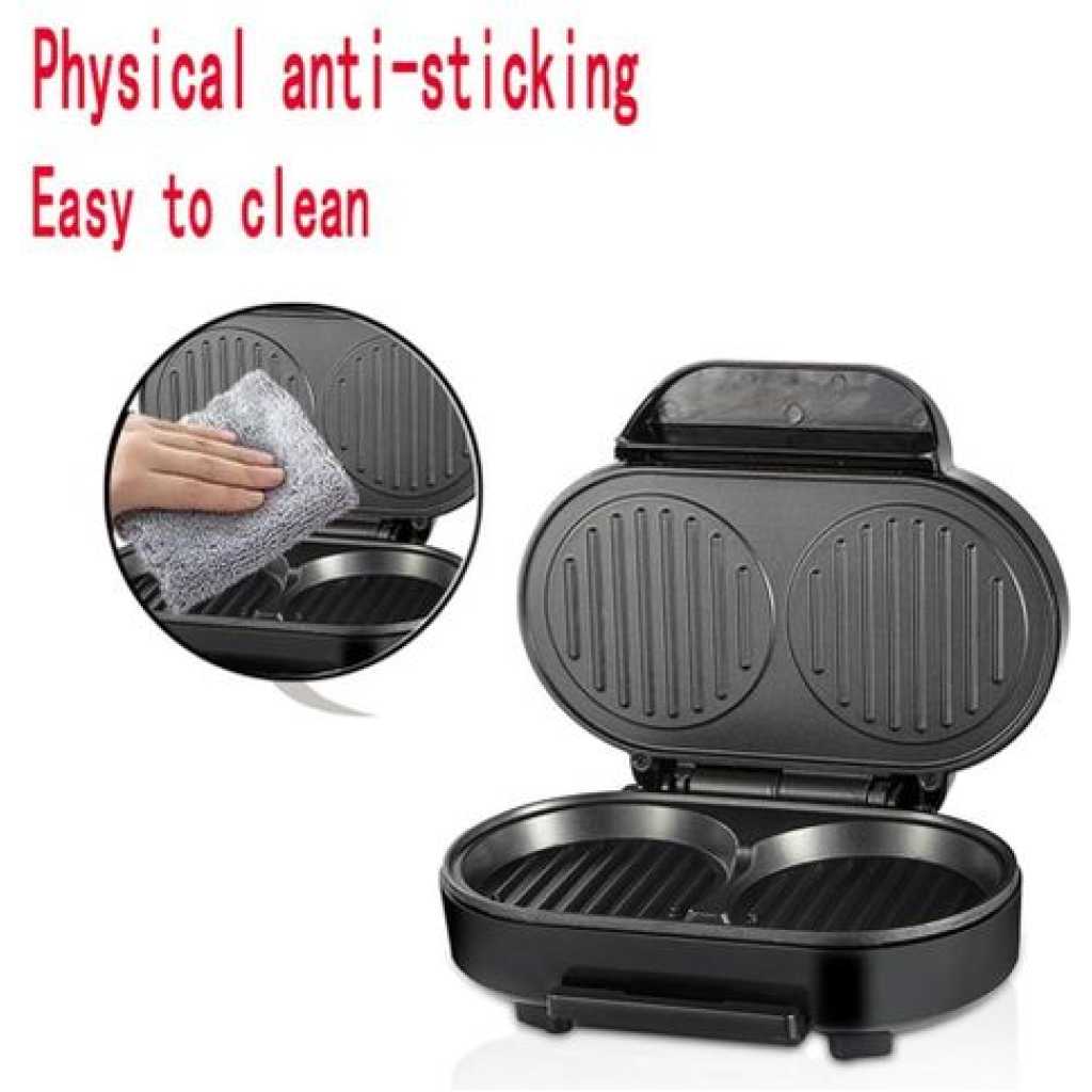 Hamburger maker Breakfast Sandwich Maker They say breakfast is the most important meal of the day. Unfortunately, mornings are hectic for most people, especially families with children. So how do you cope with hunger pangs at breakfast time? If you’re like most people, you have to rush through the meal, gobble down whatever’s handy in the kitchen, or grab a quick, on-the-go bite. That’s where the Hamilton Beach Dual Breakfast Sandwich Maker comes to the rescue. It’s all about making fresh breakfast sandwiches you can grab and go. Just choose your bread and layer on the fixings: egg, cheese, precooked meat, or the ingredients of your choice. Cook two breakfast sandwiches to perfection and to your preferences, and know when it’s ready with the built-in digital timer. In five minutes or less, two perfectly assembled breakfast sandwiches are ready to eat. You can customize each of your breakfast sandwiches with a variety of fresh ingredients. Directions: 1. Preheat Dual Breakfast Sandwich Maker until green Preheat light comes on. Lift cover, top rings, and cooking plates. 2. Place half of Buns, cut-side up, in each bottom ring of Breakfast Sandwich Maker. Top with cheese, apple slices, and bacon. 3. Lower cooking plates and top rings. Add an egg to each cooking plate. yolks with a fork or toothpick. 4. Top with remaining buns, cut-side down. 5. Close cover. Cook 4 to 5 minutes. Rotate cooking plate handles out until they stop. Lift cover and rings and carefully remove sandwiches. 6.Enjoying your home cooked breakfast! Item Type: Small Electric Grill Material: ABS, Aluminum, Stainless Steel Power: 850W Weight: Approx. 1473.00g / 51.96oz Product Size: Approx. 28x16x23cm / 11.0×6.3×9.1in packing list: 1 x Small Electric Grill Notice: The bottom of the machine is not water resistant, please do not directly rinse with water.
