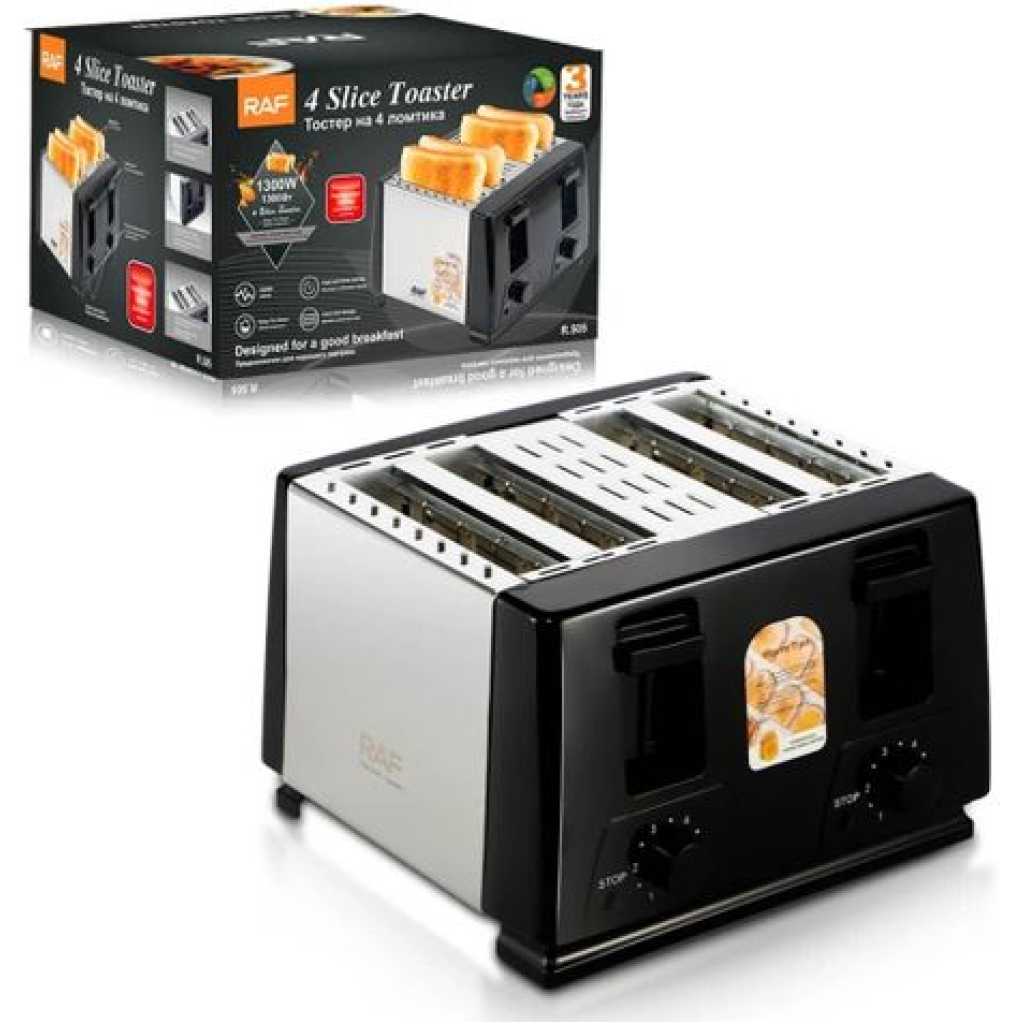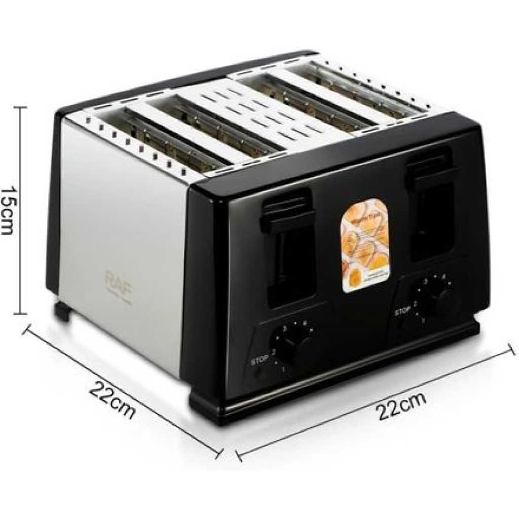 Key Features: Enjoy perfectly toasted bread, bagels, waffles, and more, every time Achieve your desired level of tastiness with precise browning settings Easily retrieve your toasted items with the convenient high-lift function Maintain a clean and organized kitchen with the removable crumb tray Add a touch of elegance to your countertop with the toaster’s sleek and modern design Order your RAF 750W Toaster today and elevate your breakfast routine to new heights of toasting perfection!